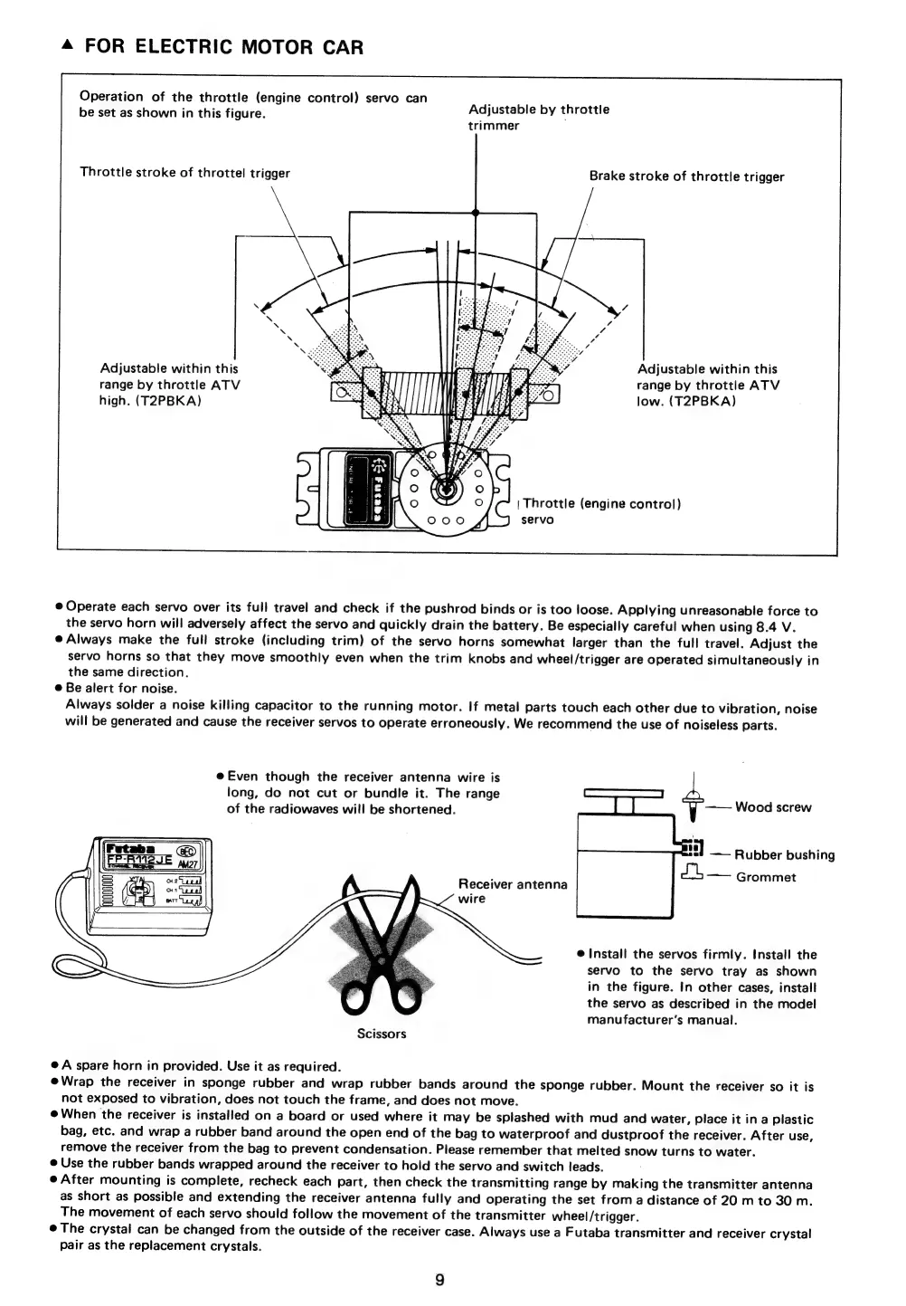 FUTABA FP-2PB - For Electric Motor Car; Servo Mounting Instructions; Receiver Protection and Mounting; Post-Mounting Checks