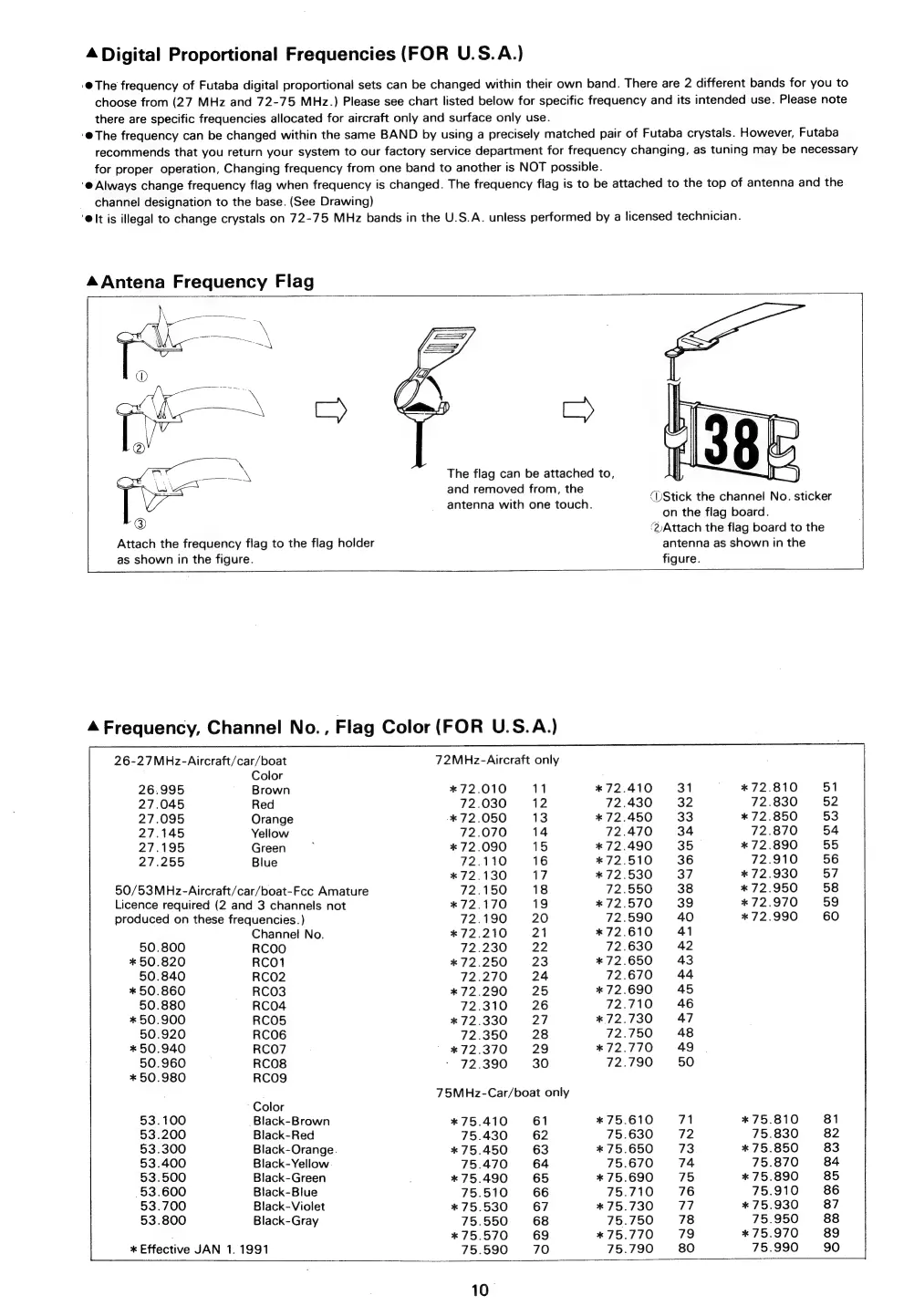 FUTABA FP-2PB - Digital Proportional Frequencies (FOR U.S.A.); Antenna Frequency Flag Usage