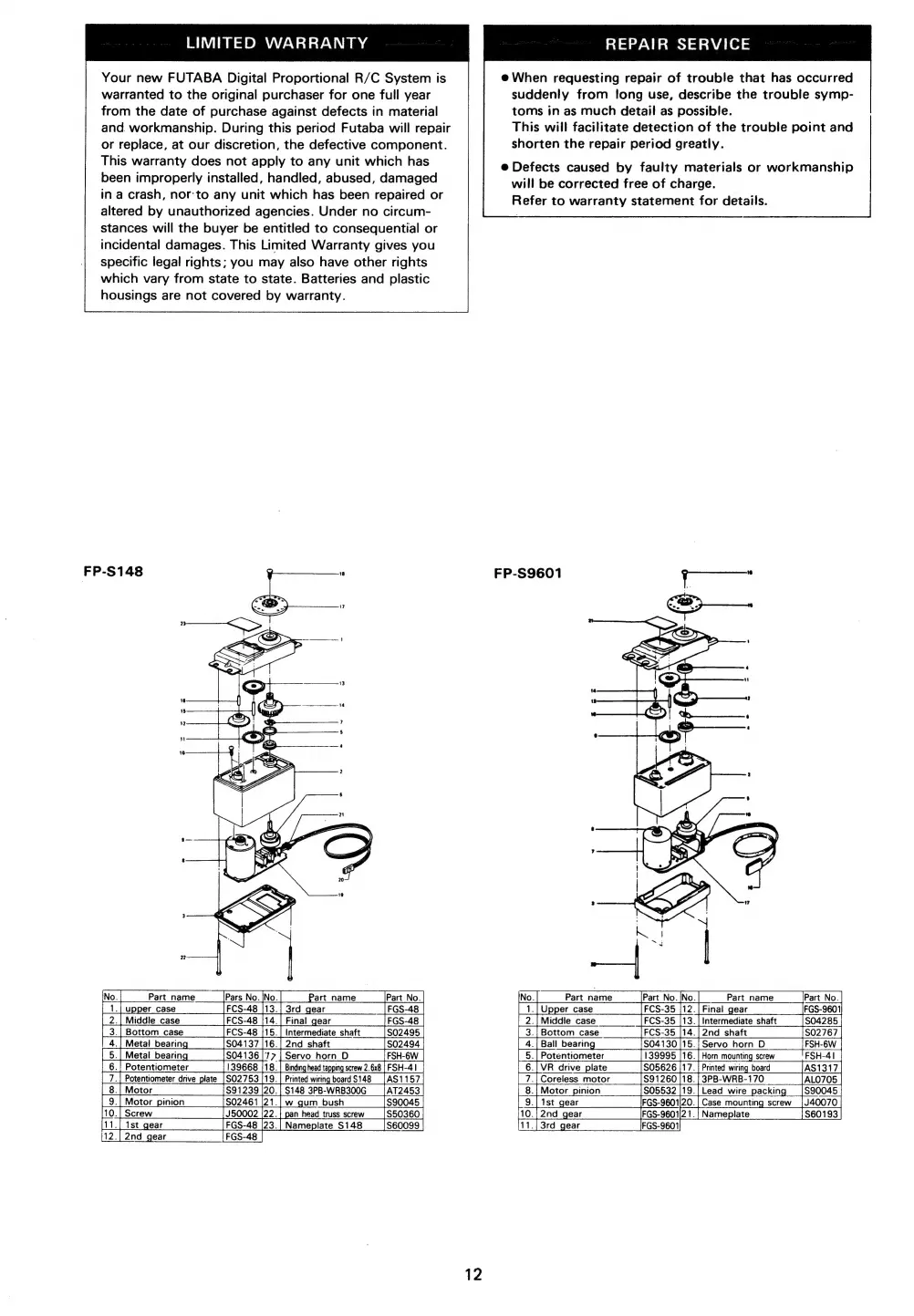 FUTABA FP-2PB - Limited Warranty; Repair Service; Requesting Repair Service; Warranty Repair Coverage