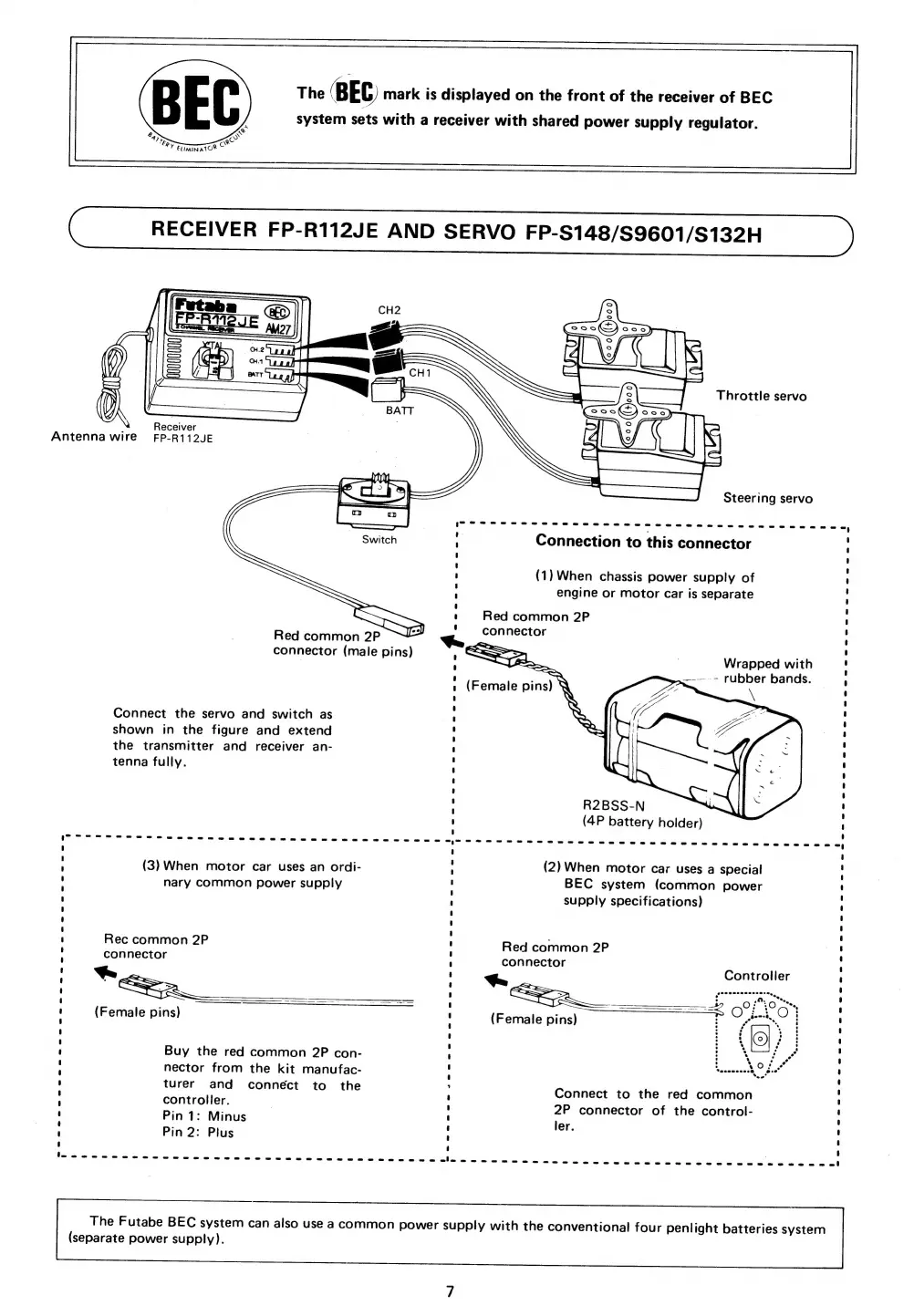 FUTABA FP-2PB - Receiver FP-R112 JE and Servo FP-S148;S9601;S132 H; Connection Procedure