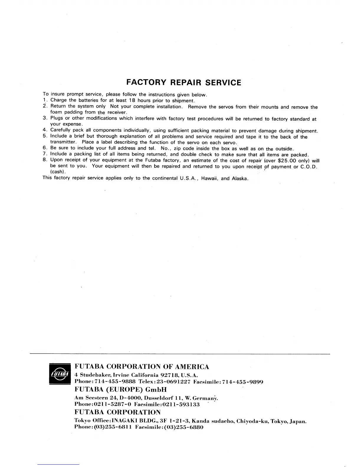 FUTABA FP-2PD - FACTORY REPAIR SERVICE