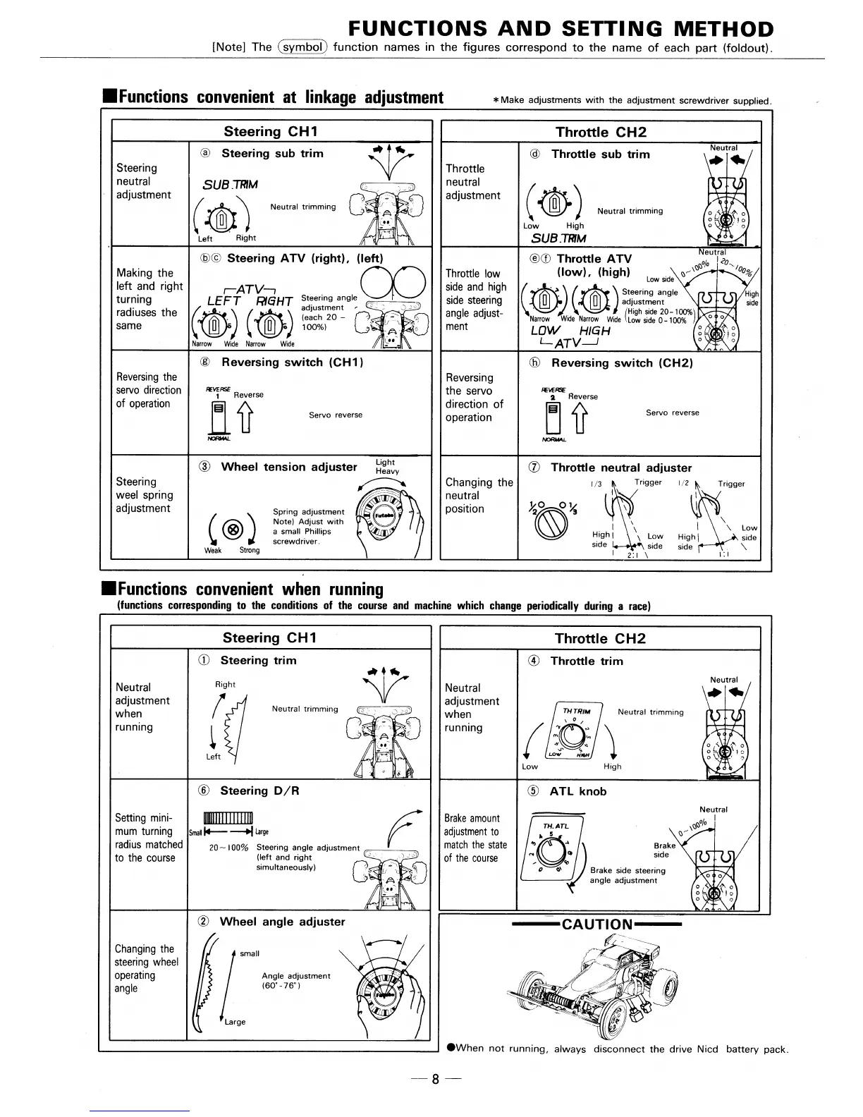 FUTABA FP-2PD - FUNCTIONS AND SETTING METHOD; Functions convenient at linkage adjustment; Functions convenient when running