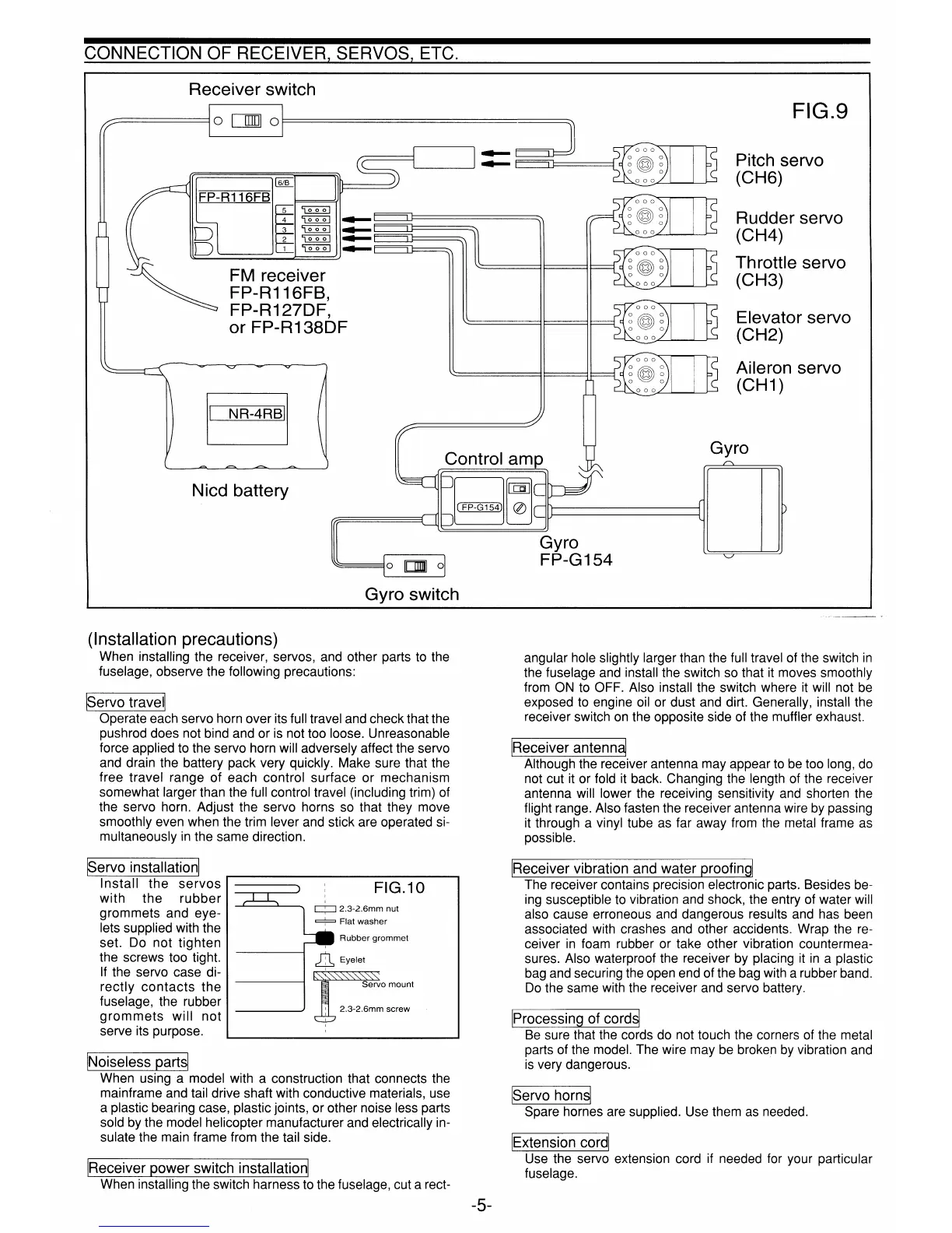 FUTABA FP-6VH - Connection of Receiver Servos, Etc.