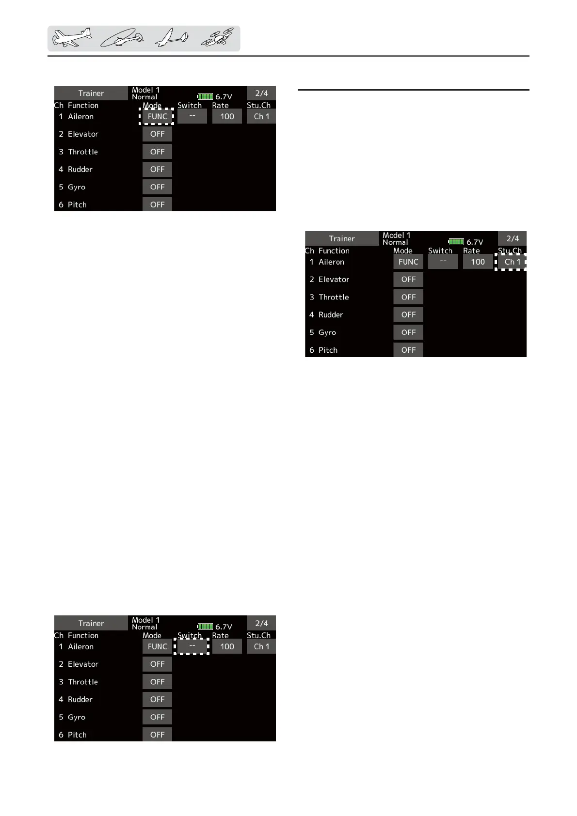*When the instructor's transmitter mode is set to "NORM",