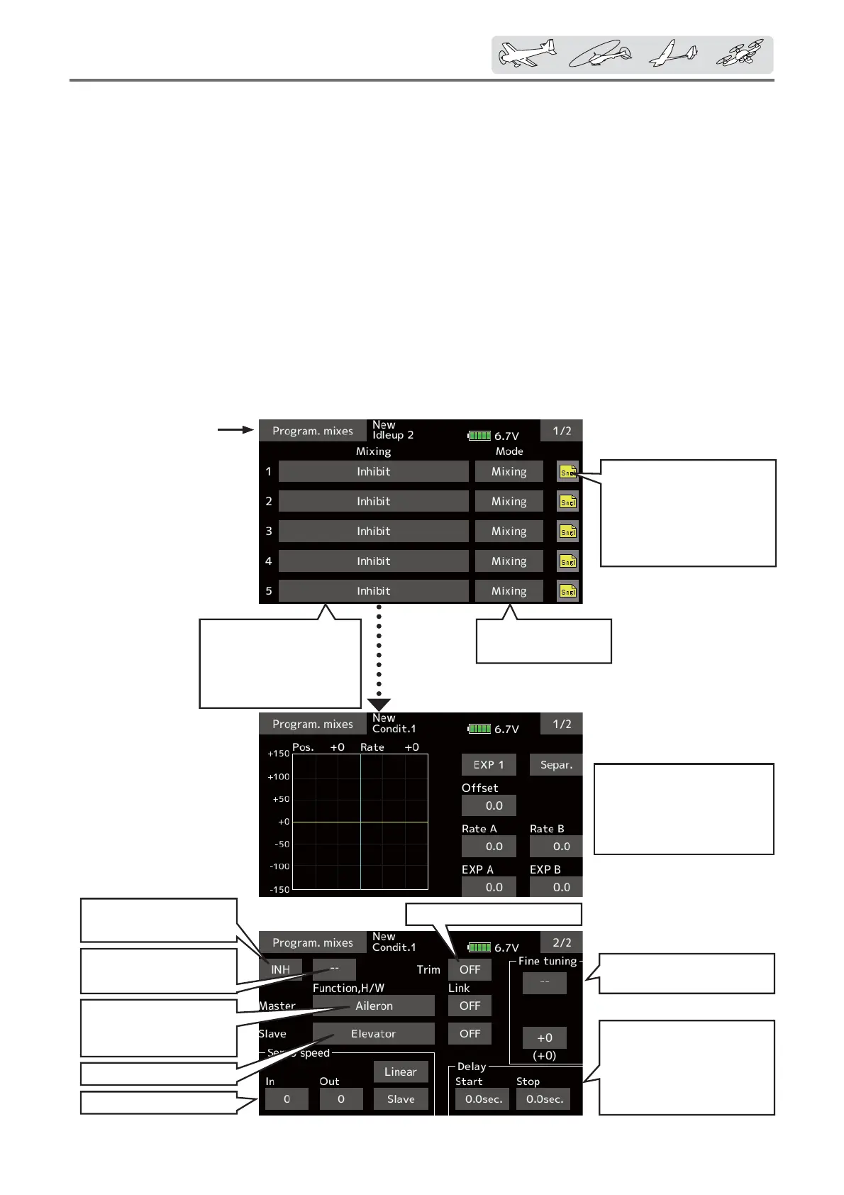 ŏ Tap the [Prog. mixes] button in the Model menu to call