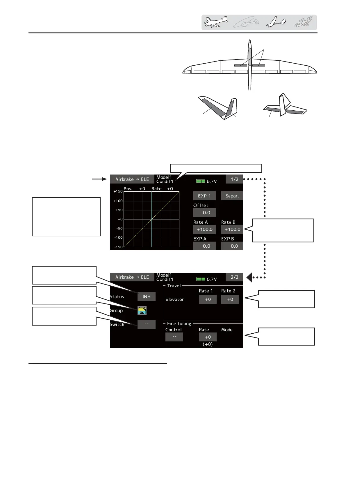 < Modelmenu(Airplane/Glider/MulticopterFunctions) >