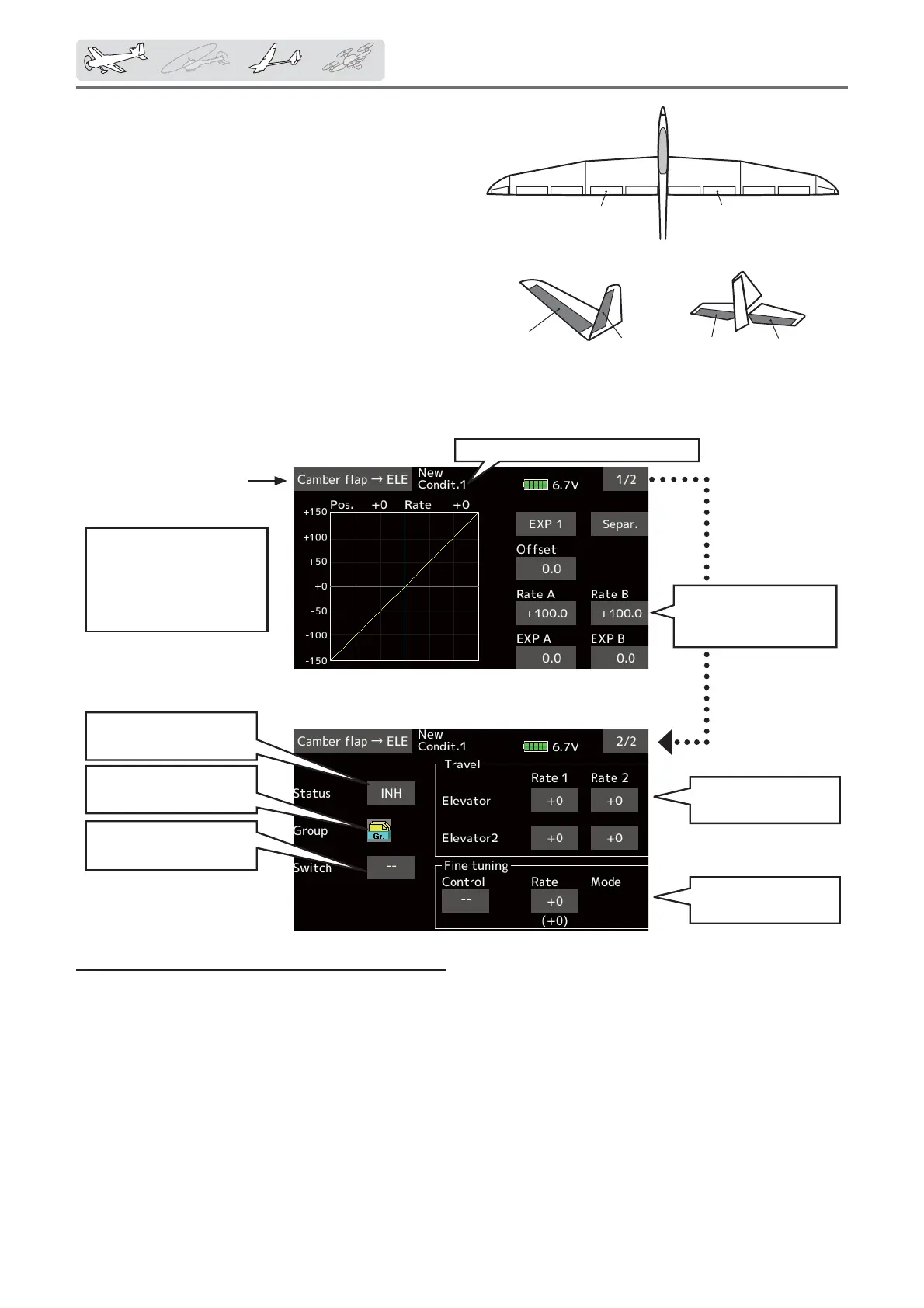 < Modelmenu(Airplane/Glider/MulticopterFunctions) >