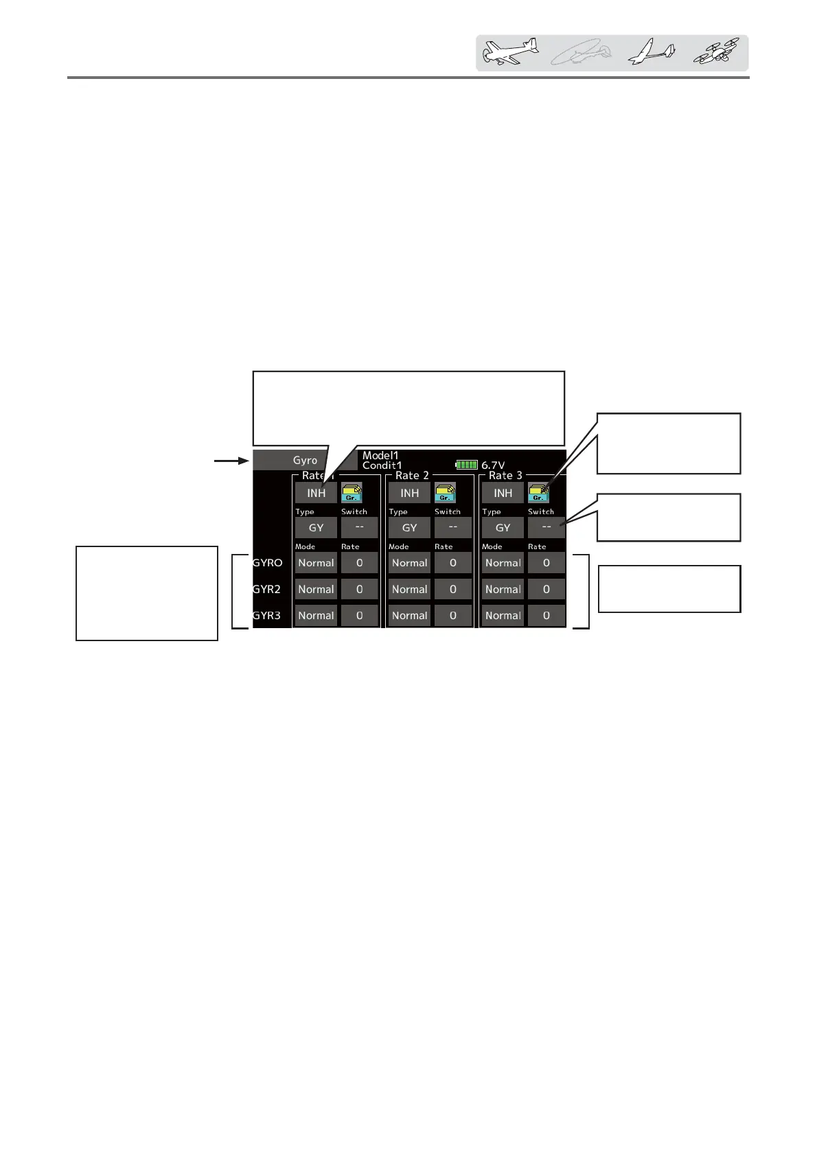 ŏ Select [Gyro] at the model menu and
