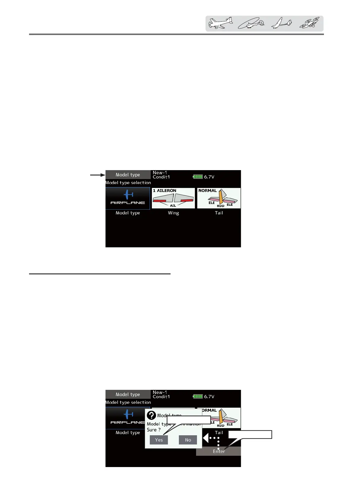 2. Set the Model type, Wing type(Airplane/