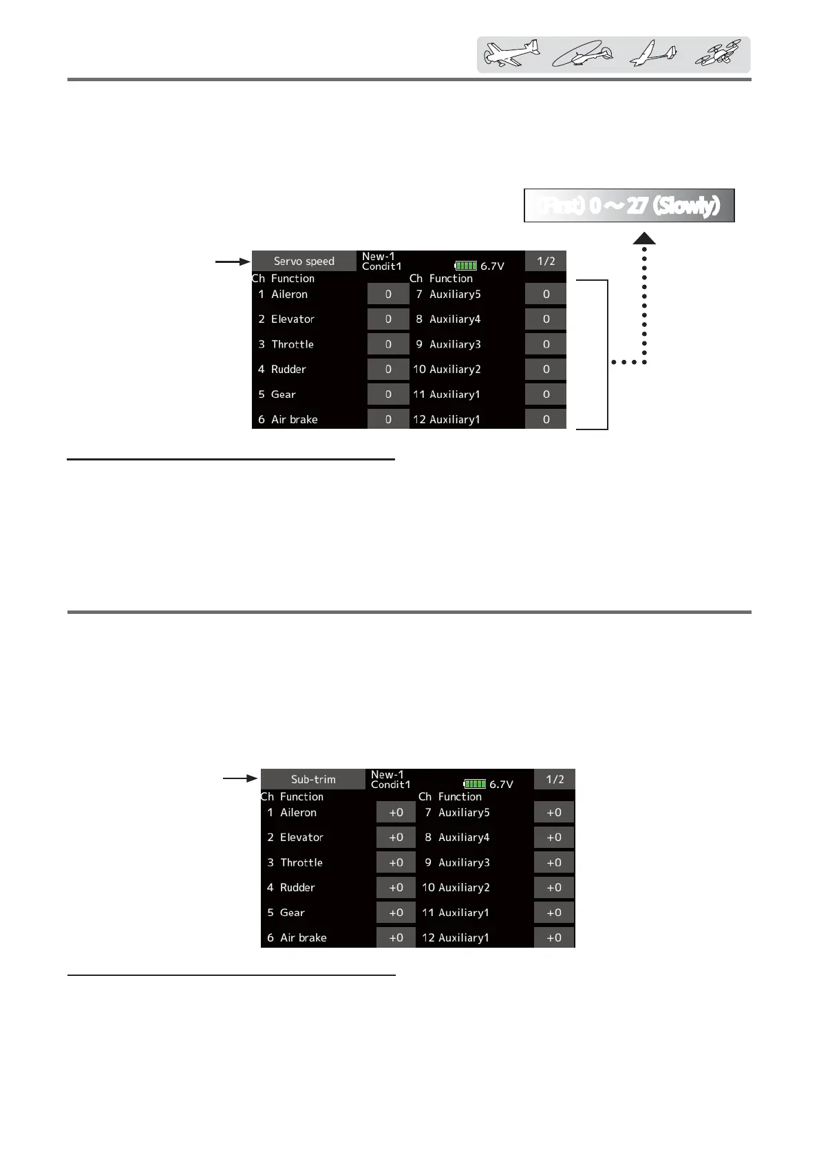 ŏ Tap the [Sub-trim] button in the Linkage menu to