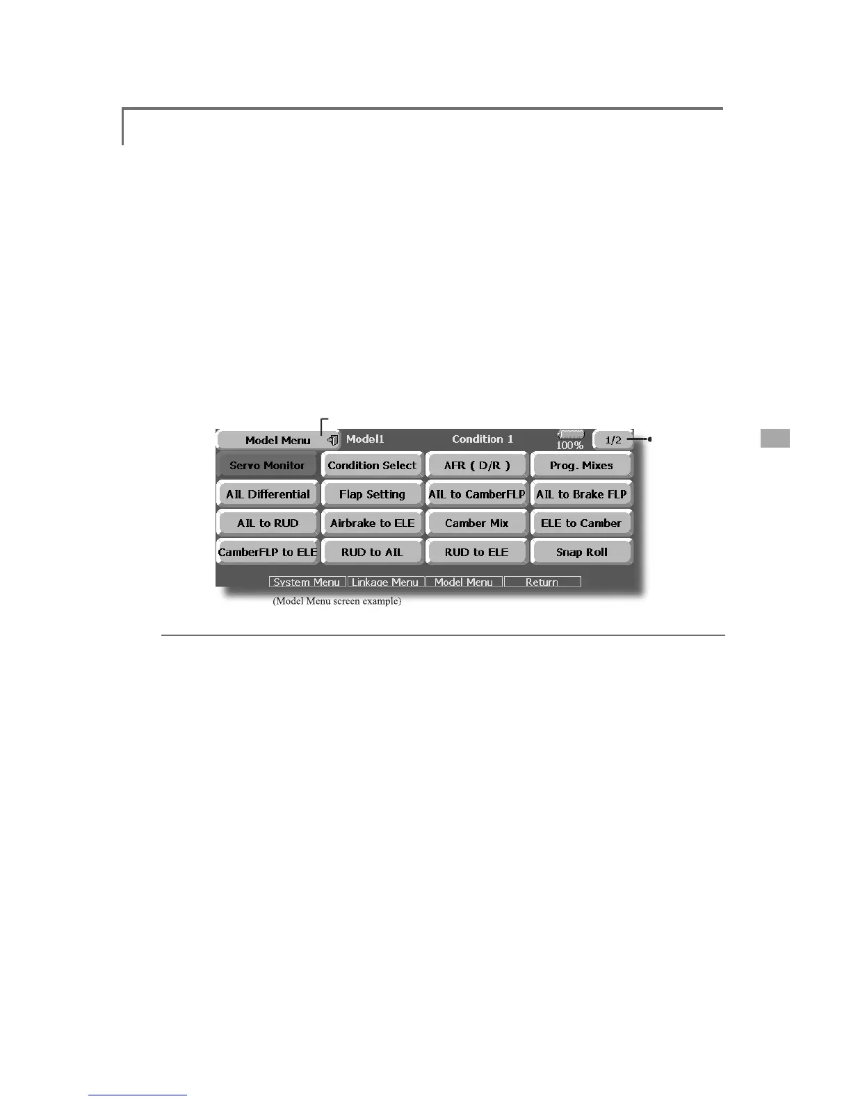 The Model Menu screen depends on the model type. This screen is for model type 4AIL+4FLP