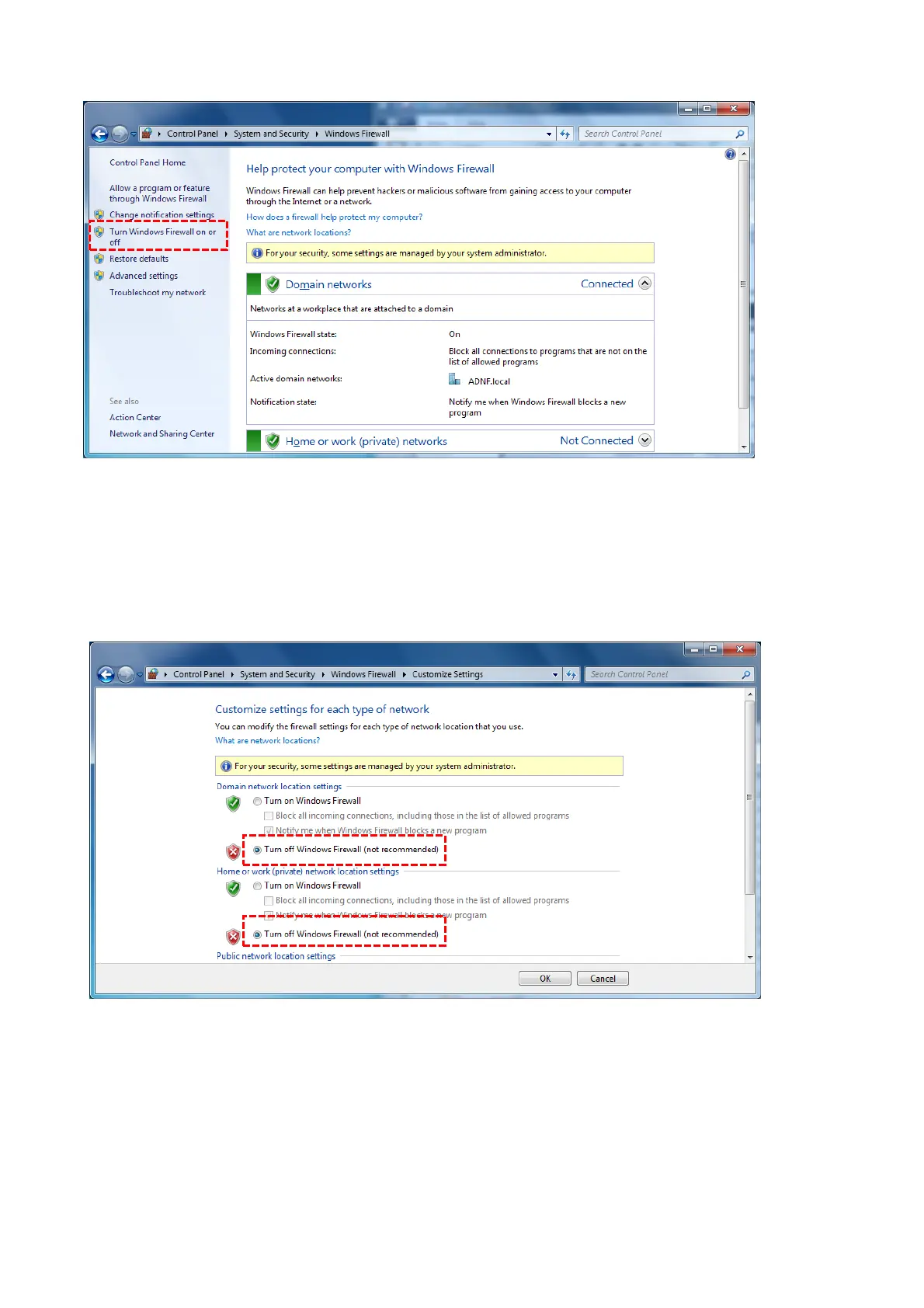 Step5 Select [Windows Firewall on (Not recommended)] and push [OK]