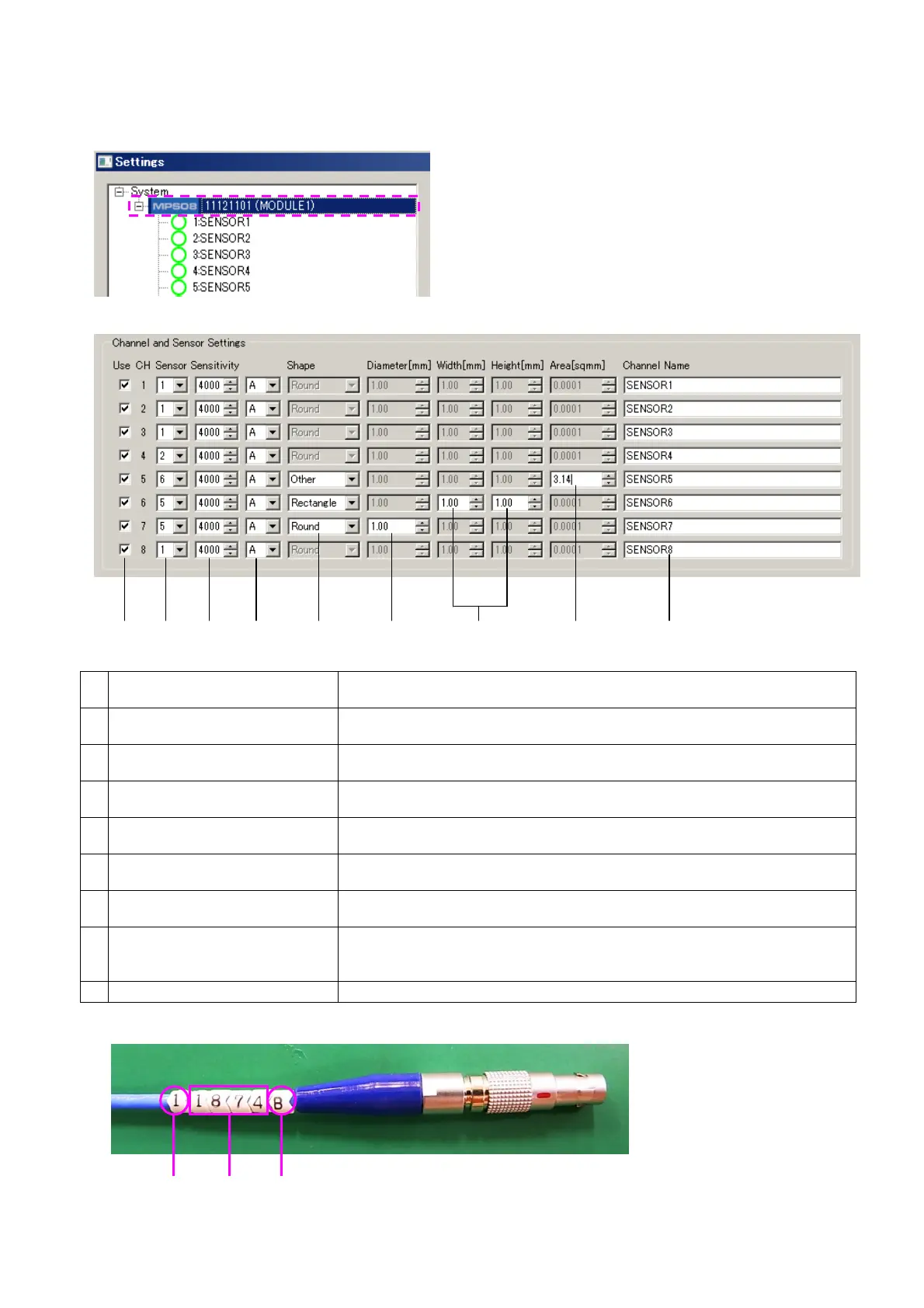 Input the sensitivity (numerical value) of a sensor. Input the second to fifth