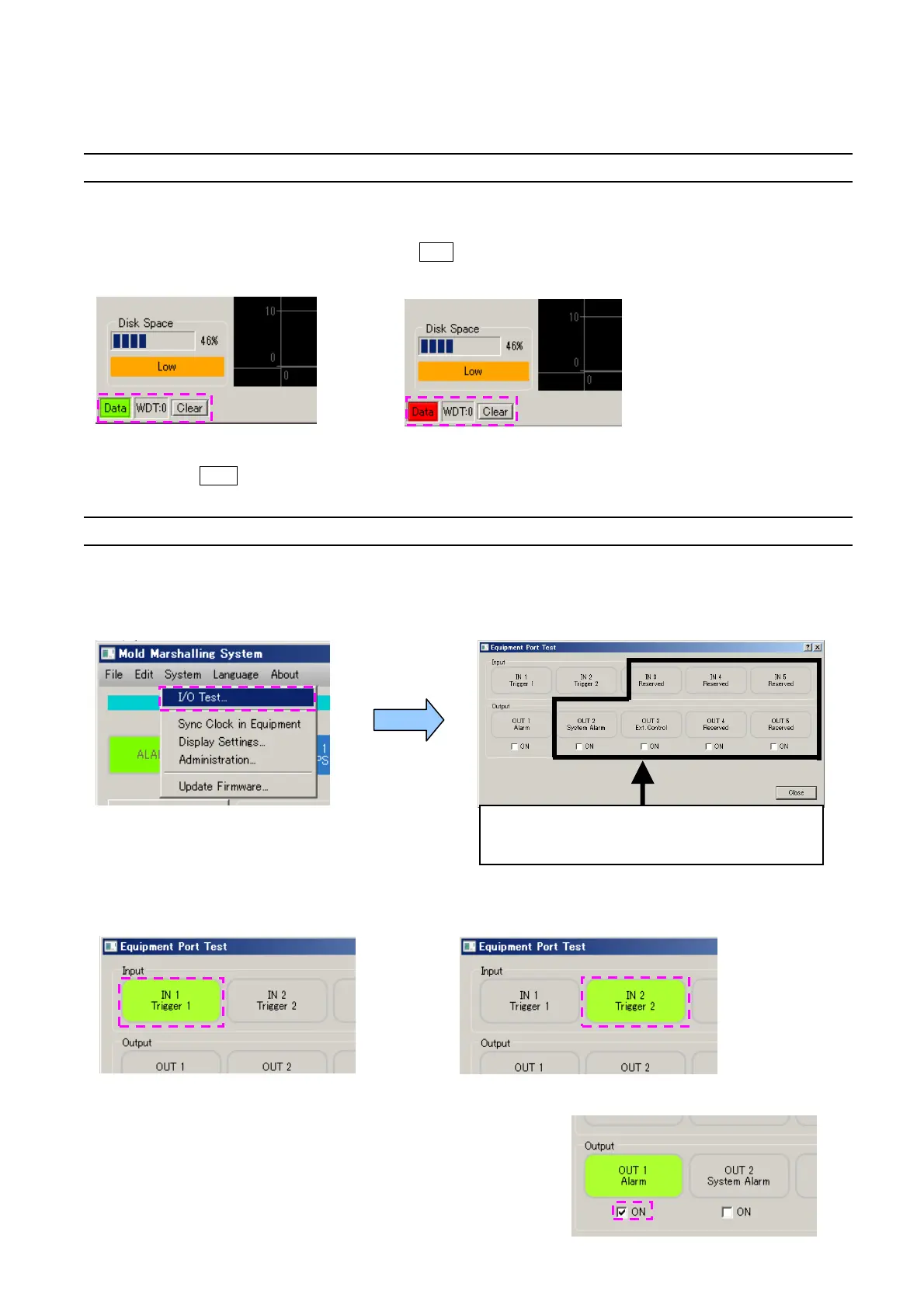 Input a signal (trigger signal or clear alarm signal). If it is input normally, the signal name is displayed in green