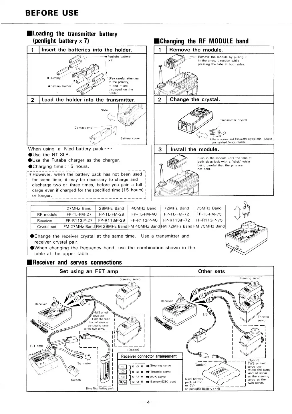 FUTABA PCM1024 - Before Use; Loading the Transmitter Battery; Changing the RF Module Band