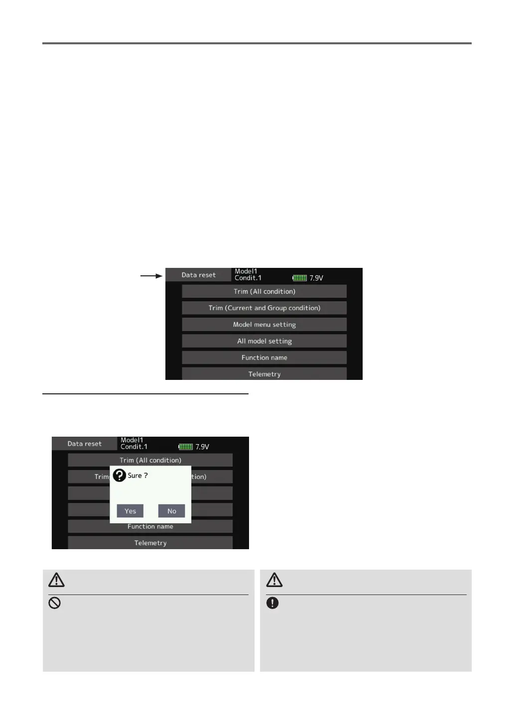 Never engage the Data reset function
