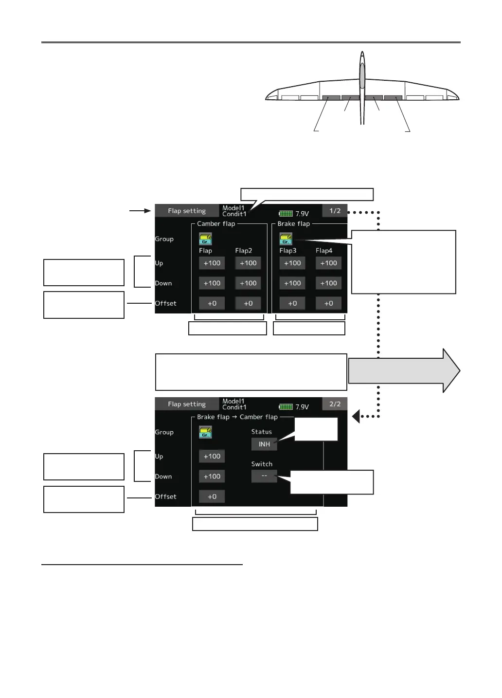 FLP1/2, brake flaps: FLP3/4) can be adjusted