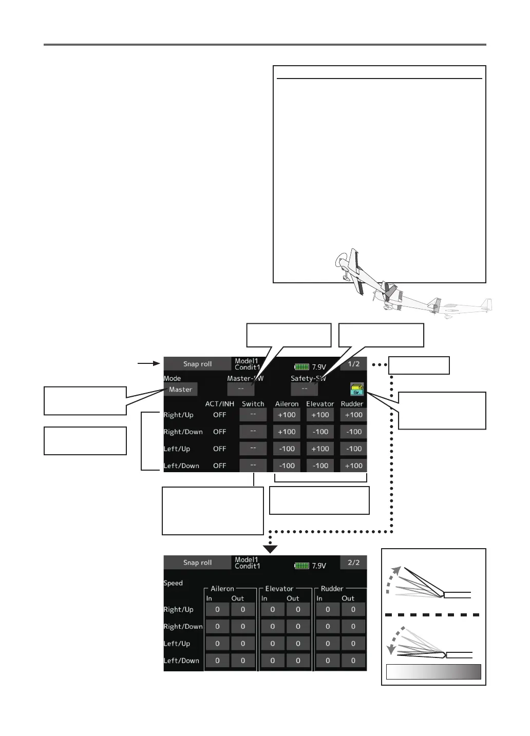 the Snap Roll function is turned ON/OFF by master