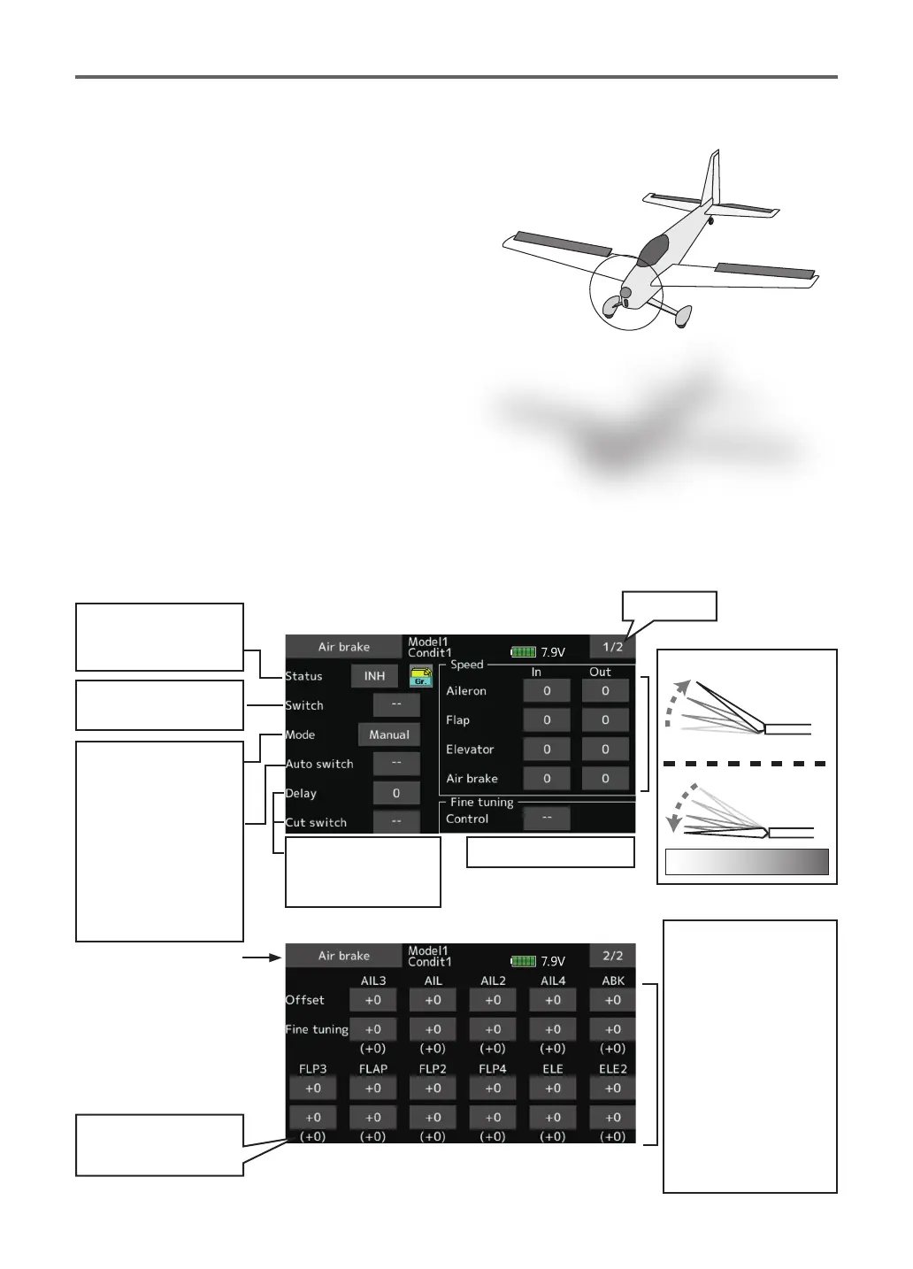 ● Select [Air brake] at the model menu and call the