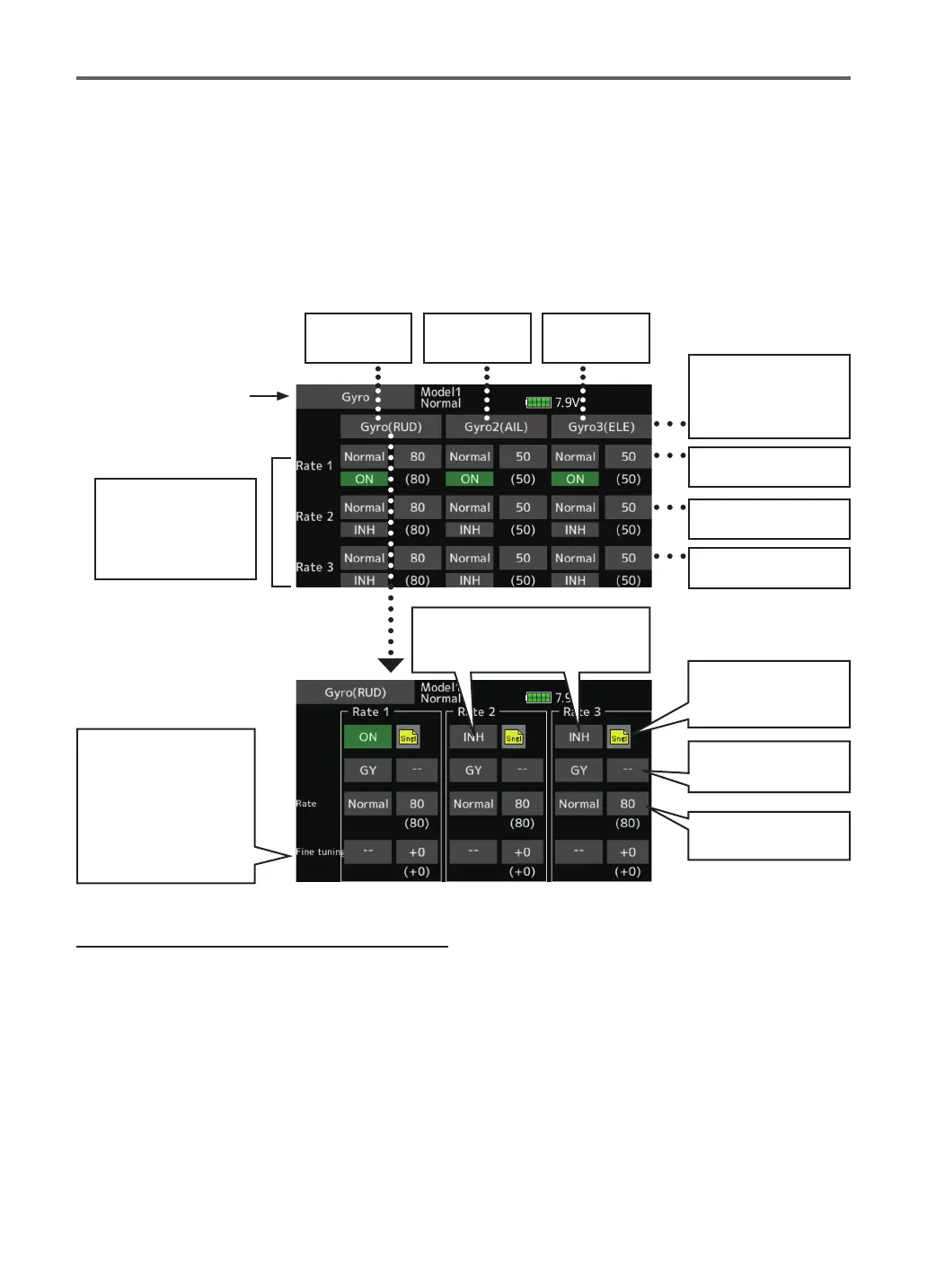 The gyro sensitivity can be switched with each