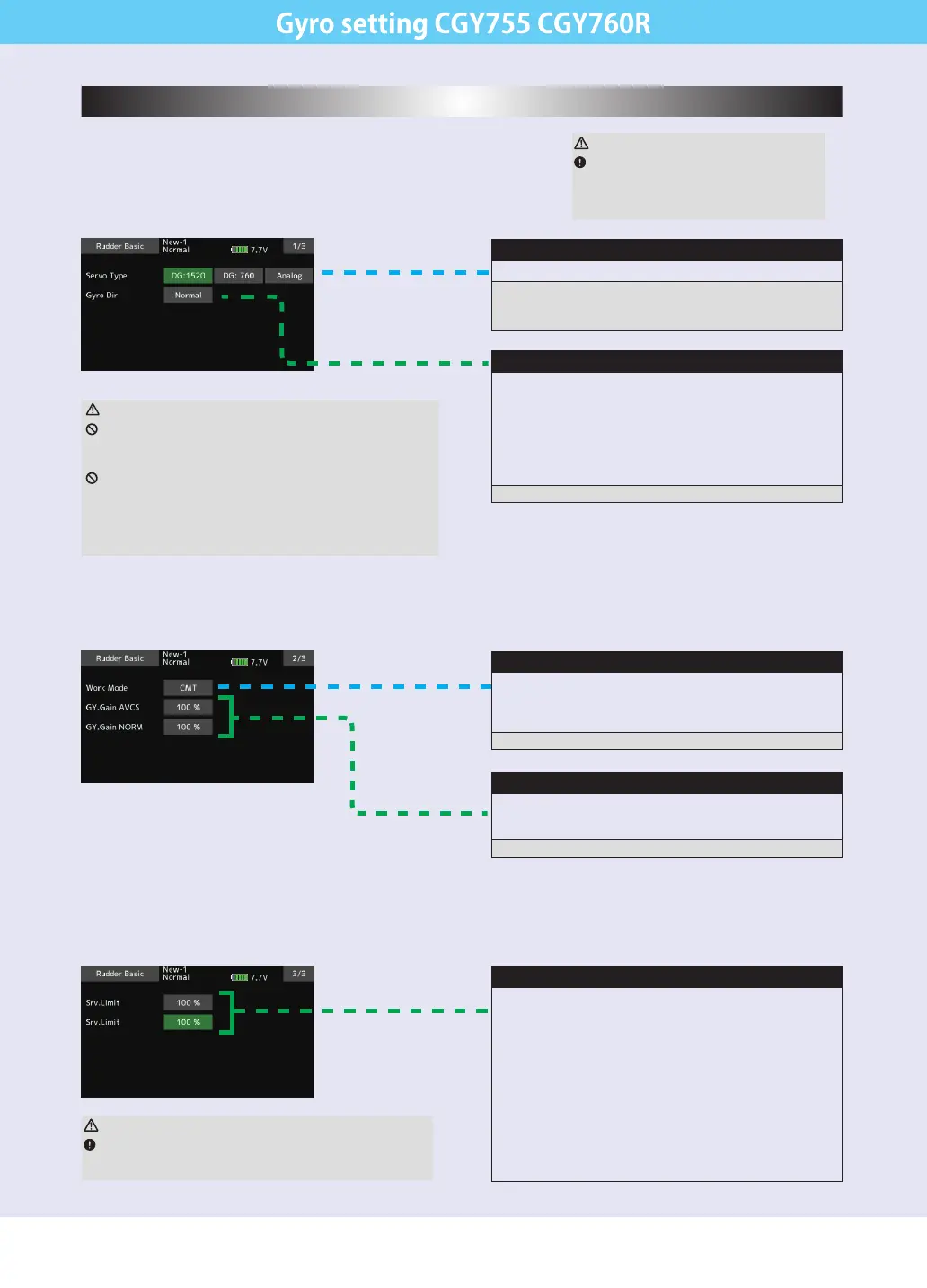 When the CGY is in the "Srv.Limit" parameter mode, the gyro will no lon-