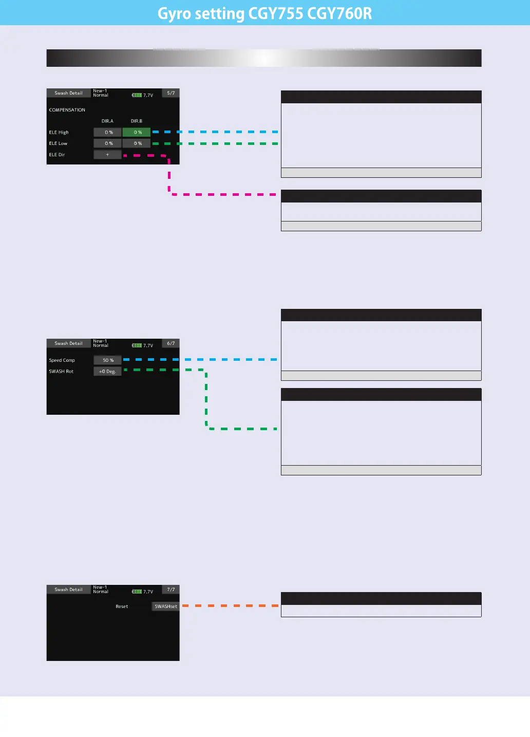 Using the "SWASH Rot" button, electronically add rotor head phasing to