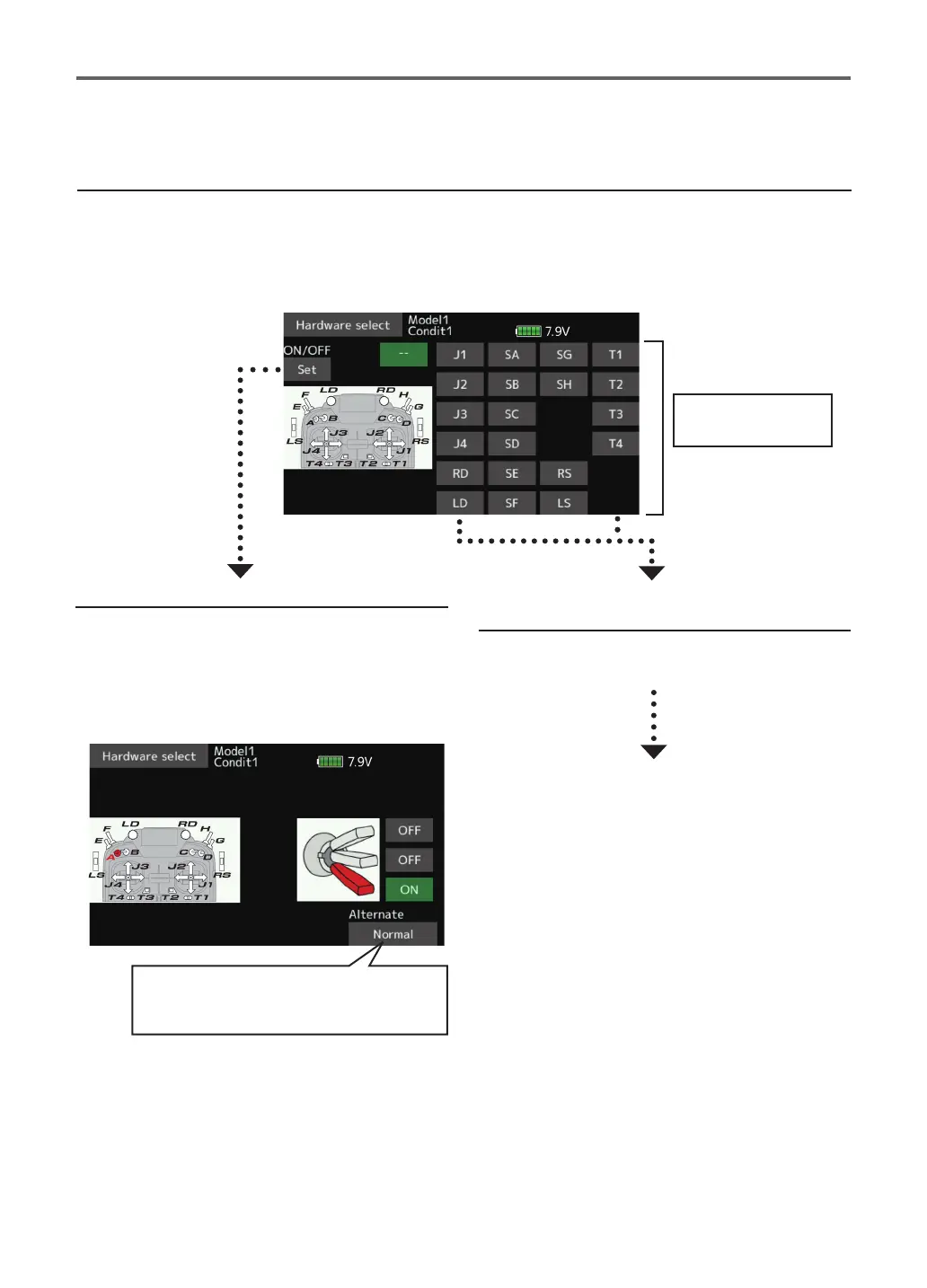 The various functions used in the T16IZ can be selected by switch. The switch (including when stick, trim