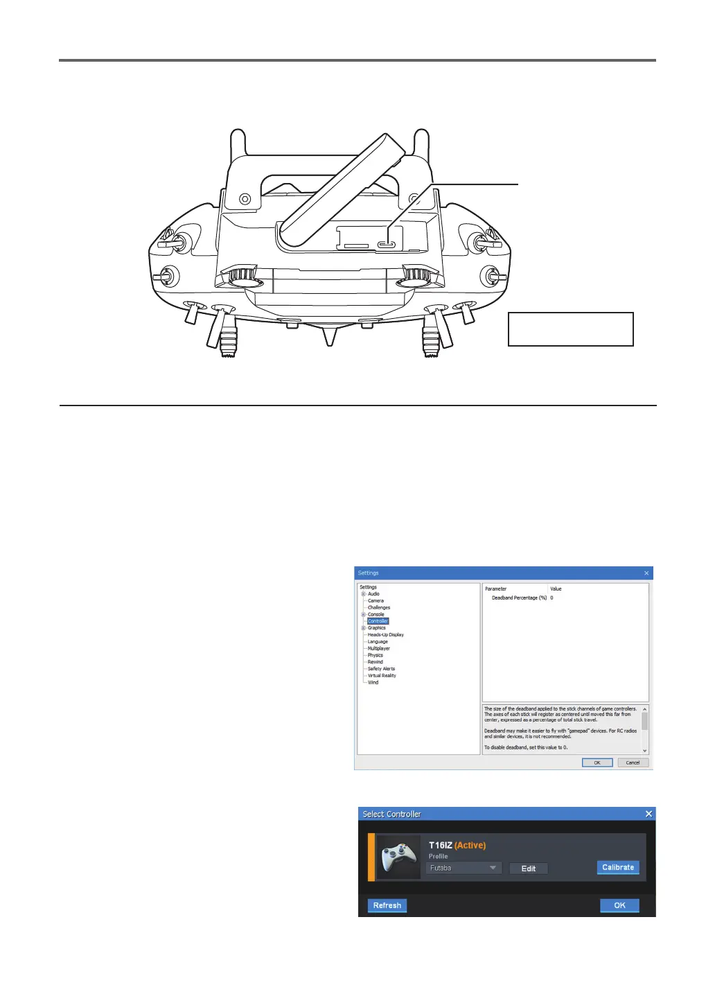 The transmitter can be used as a game controller by connecting it to a computer with a USB cable. (Some