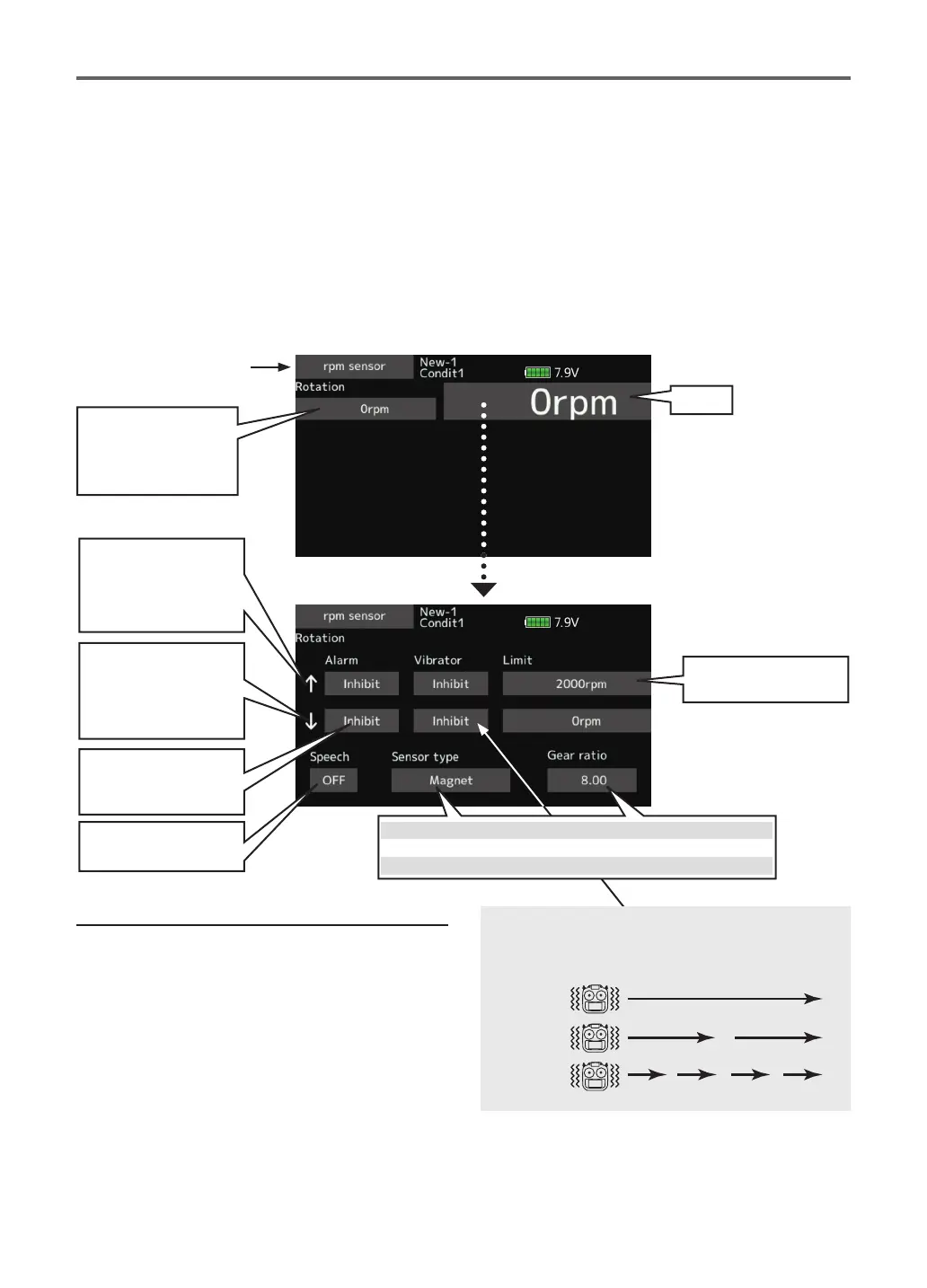 ● Tap the [ rpm sensor] button in the Telemetry screen