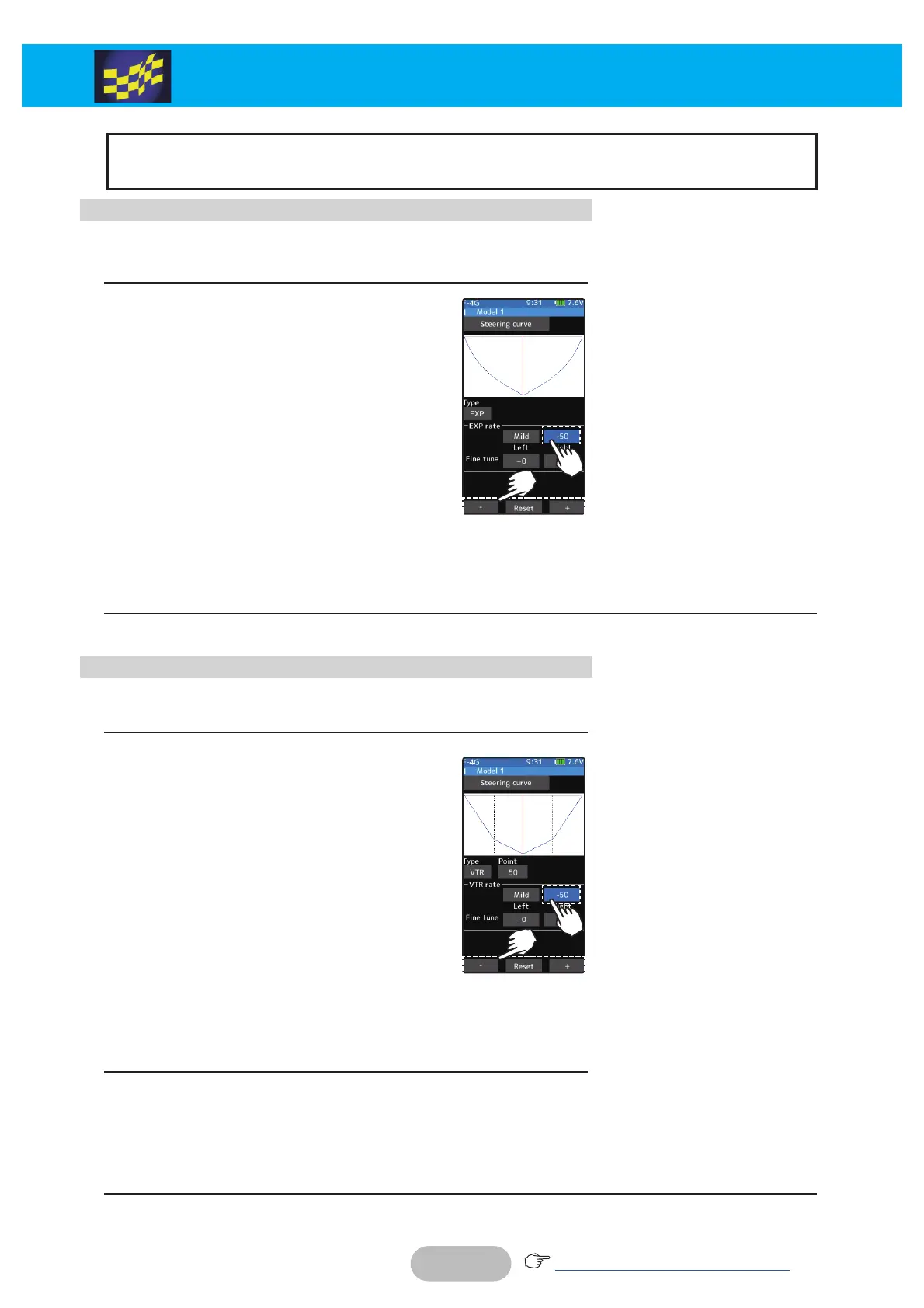 the [+] or [-] buttons to adjust the steering curve.