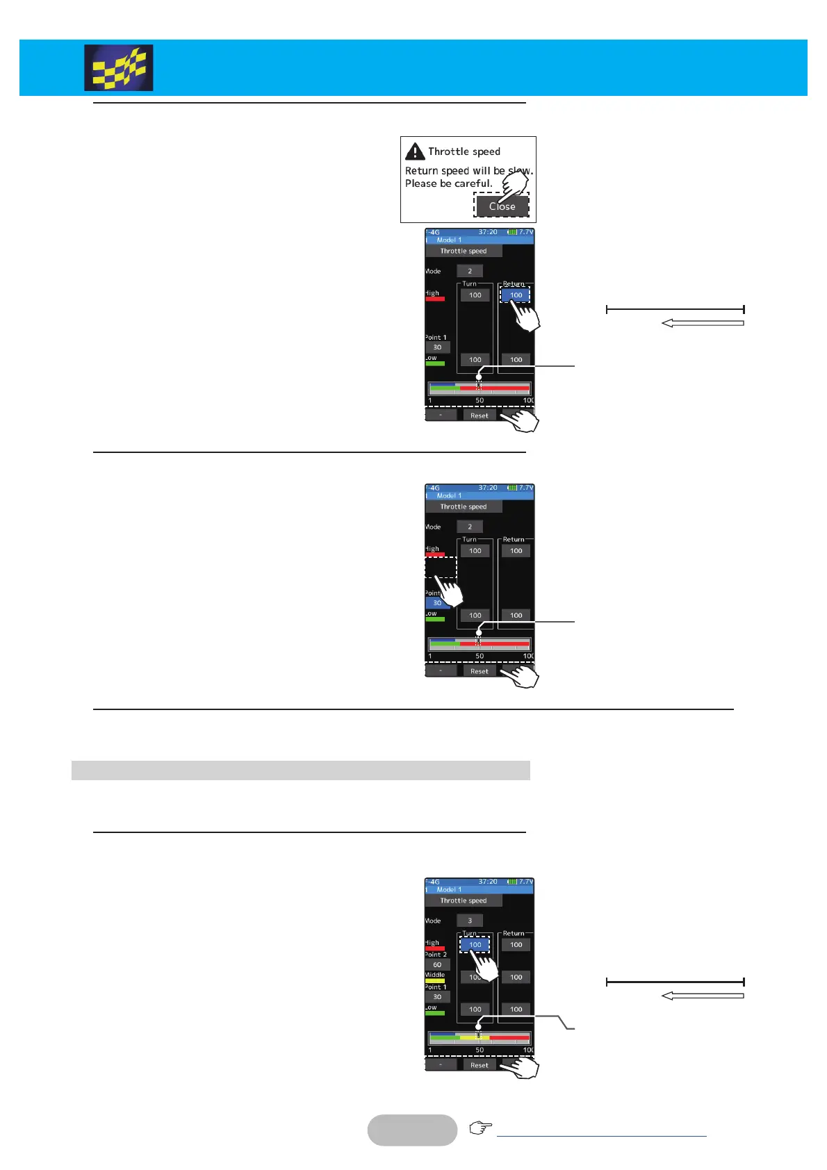 ( "Low", "Middle", or "High" turn direction delay adjustment)