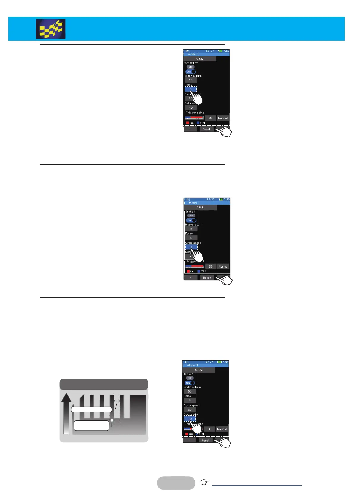"100": A.B.S. function performed after an approximate 1.0-sec delay.