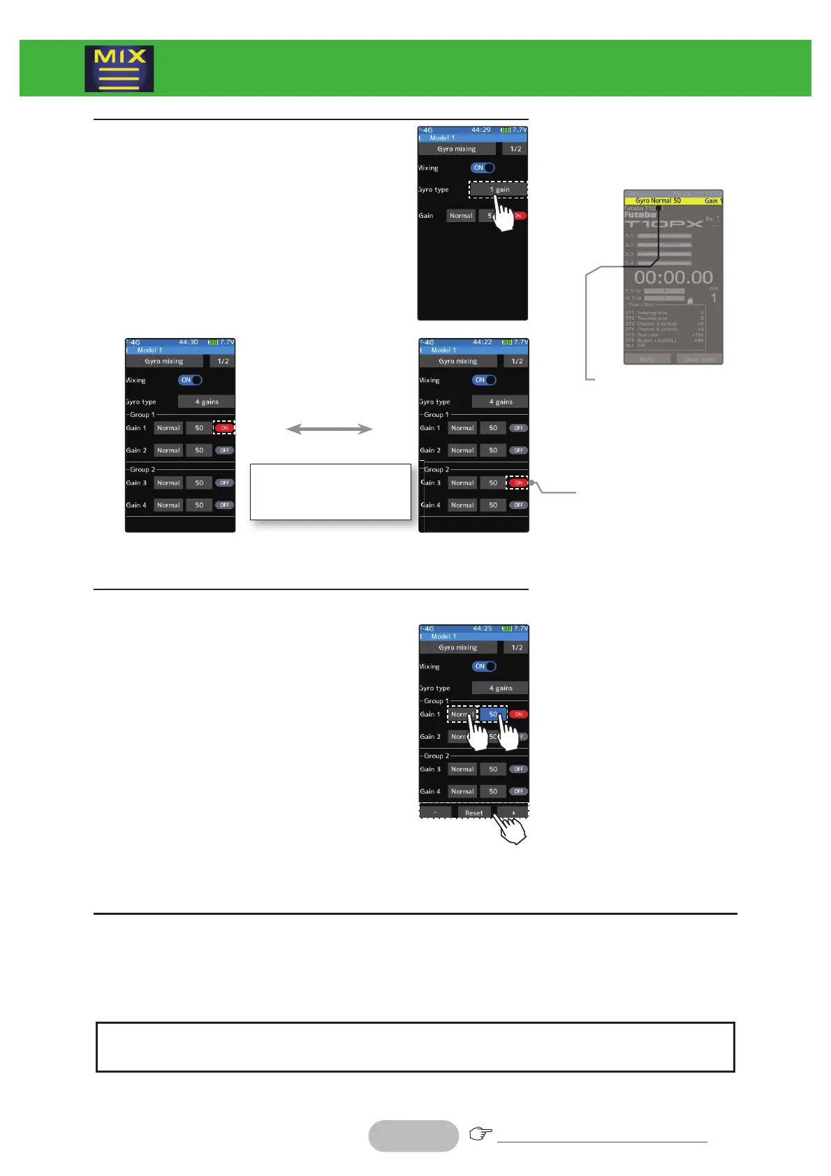 "2 gain" :Switching Gyro gain 1 and Gyro gain 2