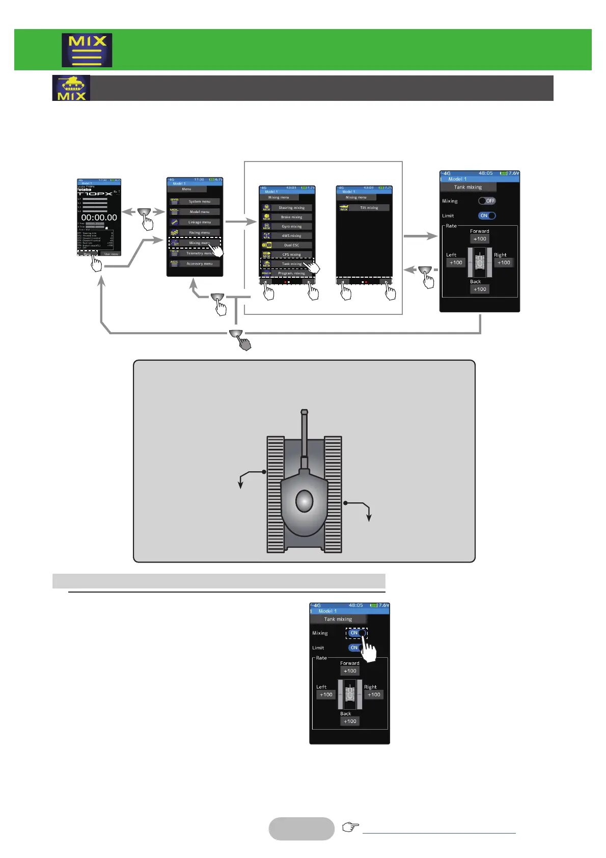 Tap "Mixing" (ON) or (OFF) to select ON/