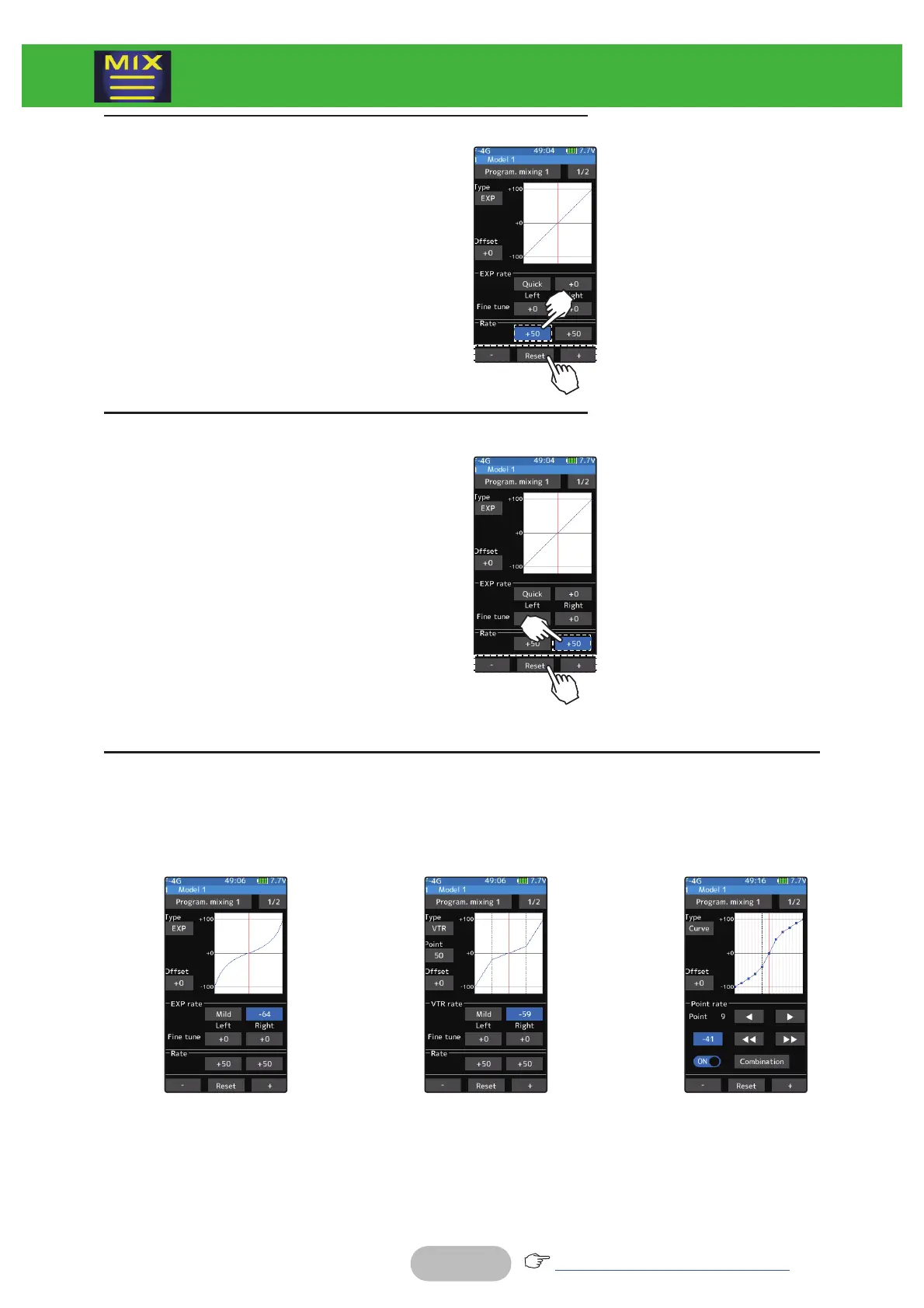 "EXP/VTR/Curve" mixing can be set from master channel to slave channel. For details on