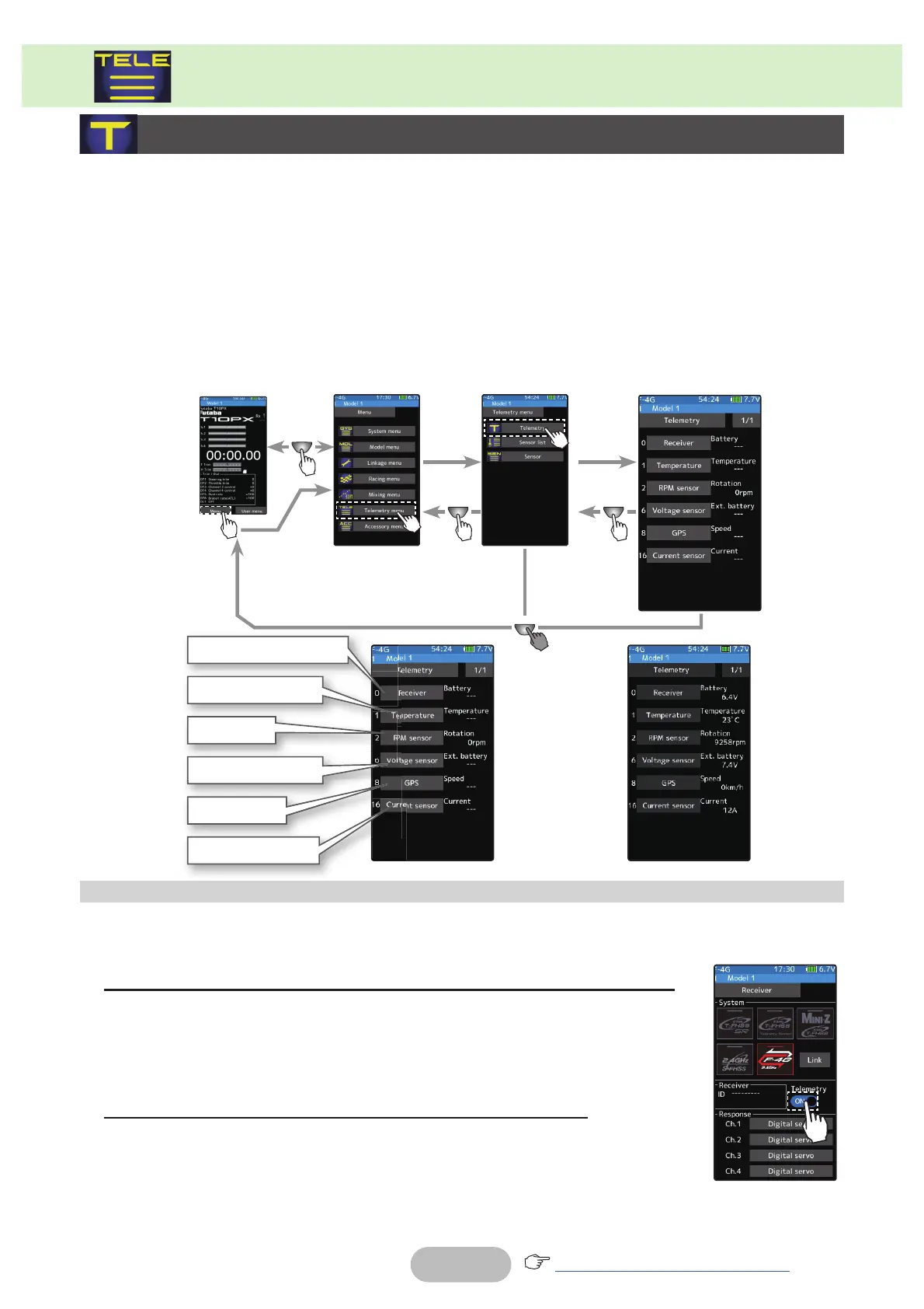Tap telemetry (ON) or (OFF) to select ON/OFF.