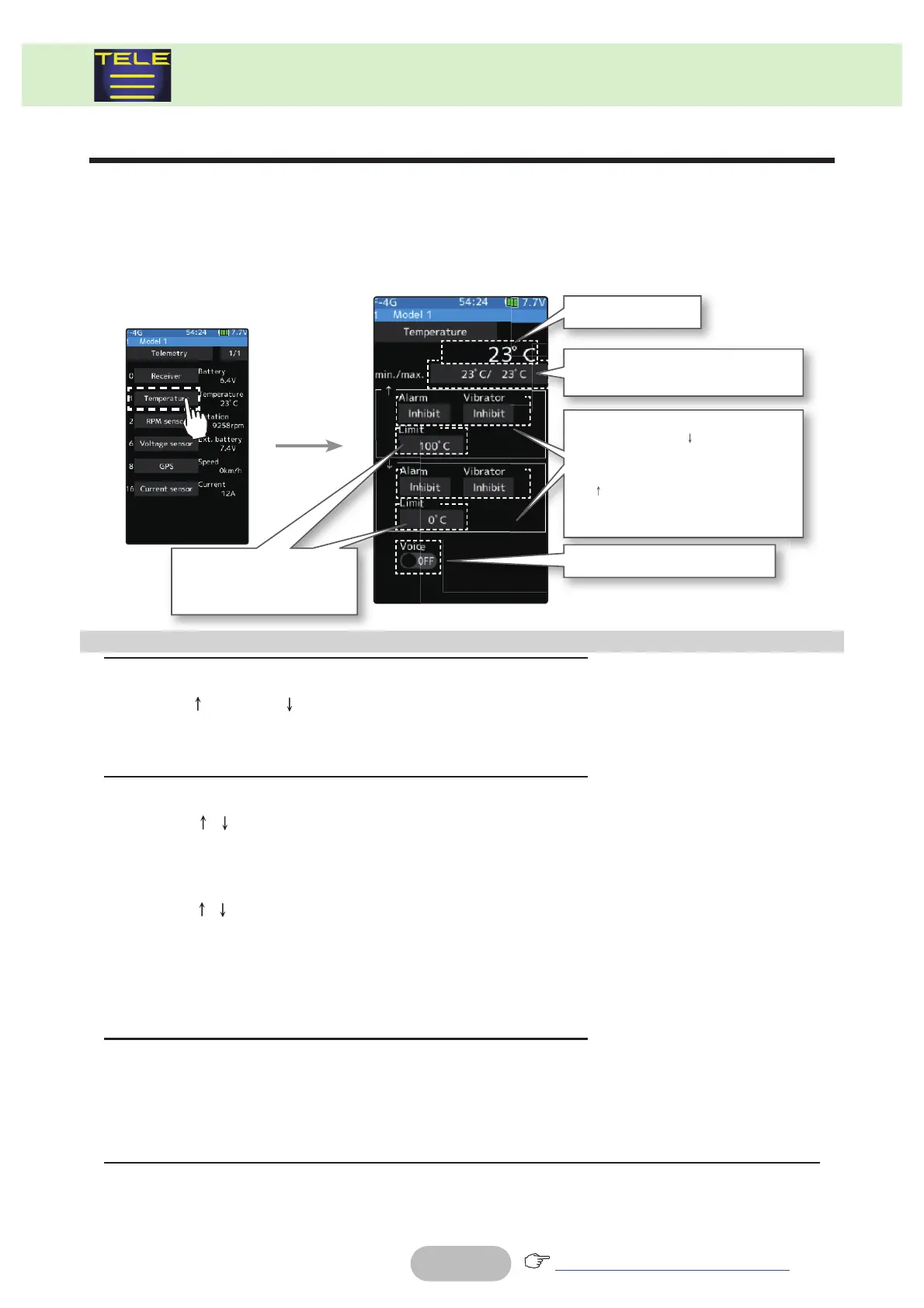 This screen displays and sets the temperature information from an SBS-01T (telemetry