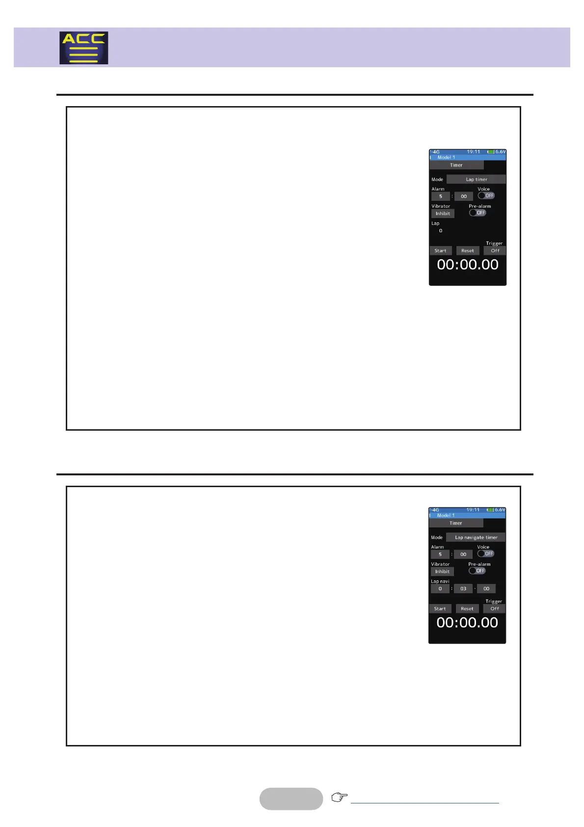 - The lap timer can memorize each lap time of each switch operation. (200 laps)