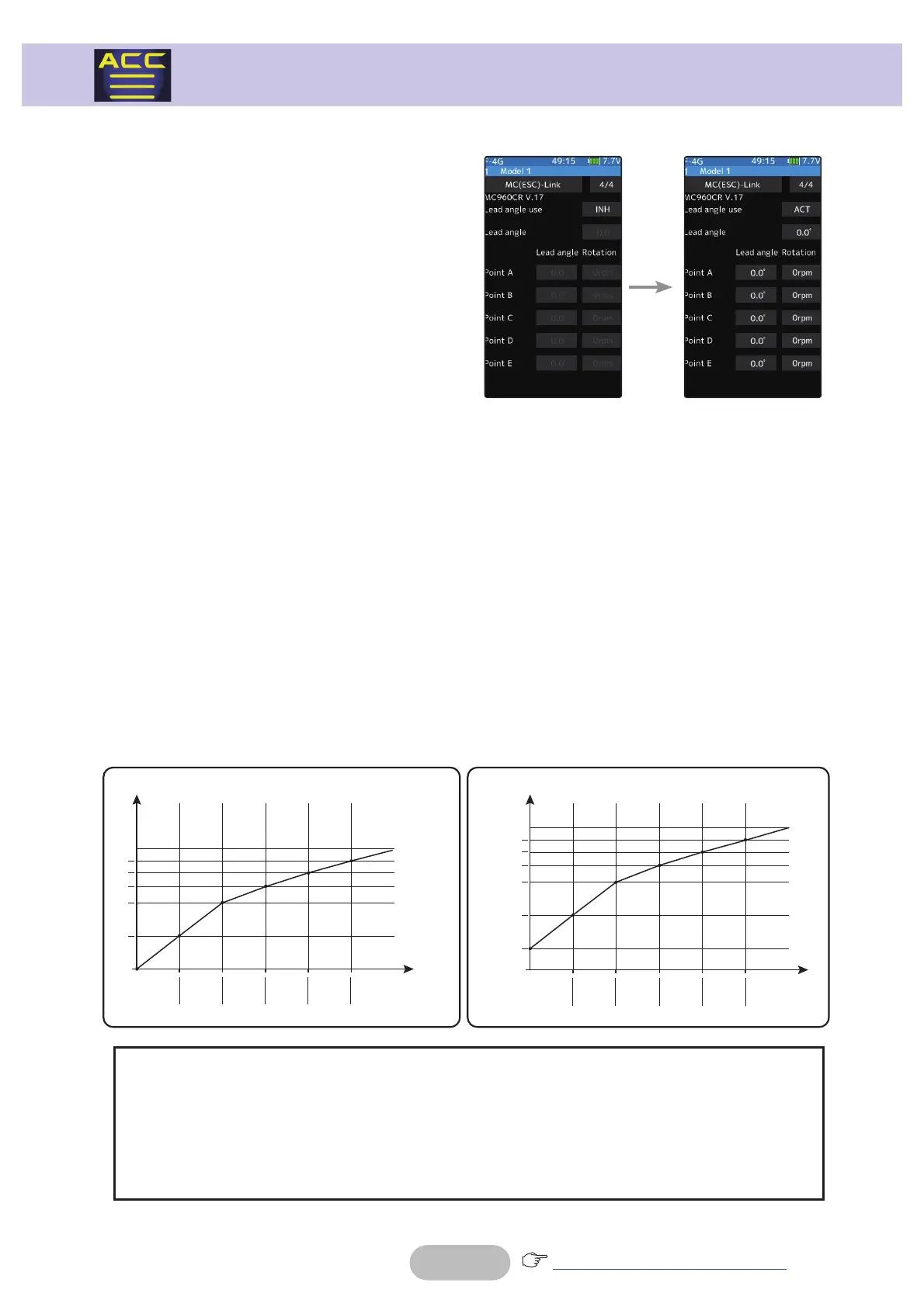The "Lead angle" and "Point A, B, C, D, E Lead angle" relationship is shown on the graphs