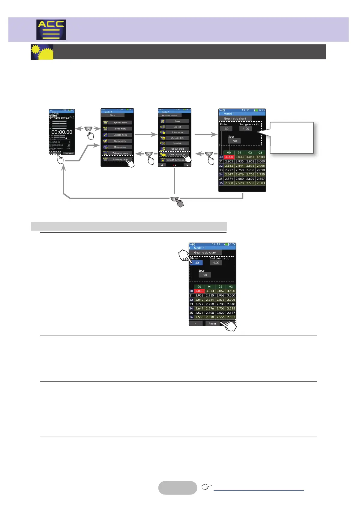 the [+] and [-] buttons to set the second gear ratio. The gear ratio is then calculated, and the