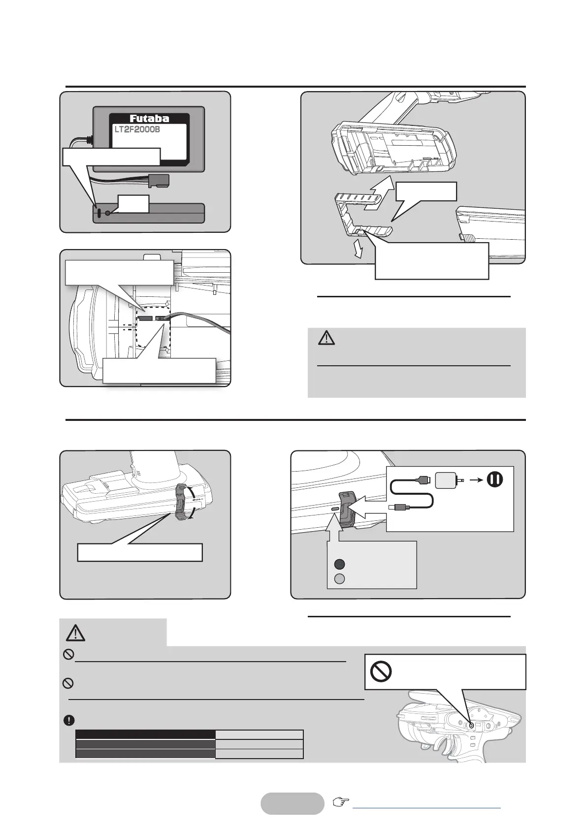 To charge the battery, connect a type C USB cable to the Futaba optional USB AC adapter or a commercially