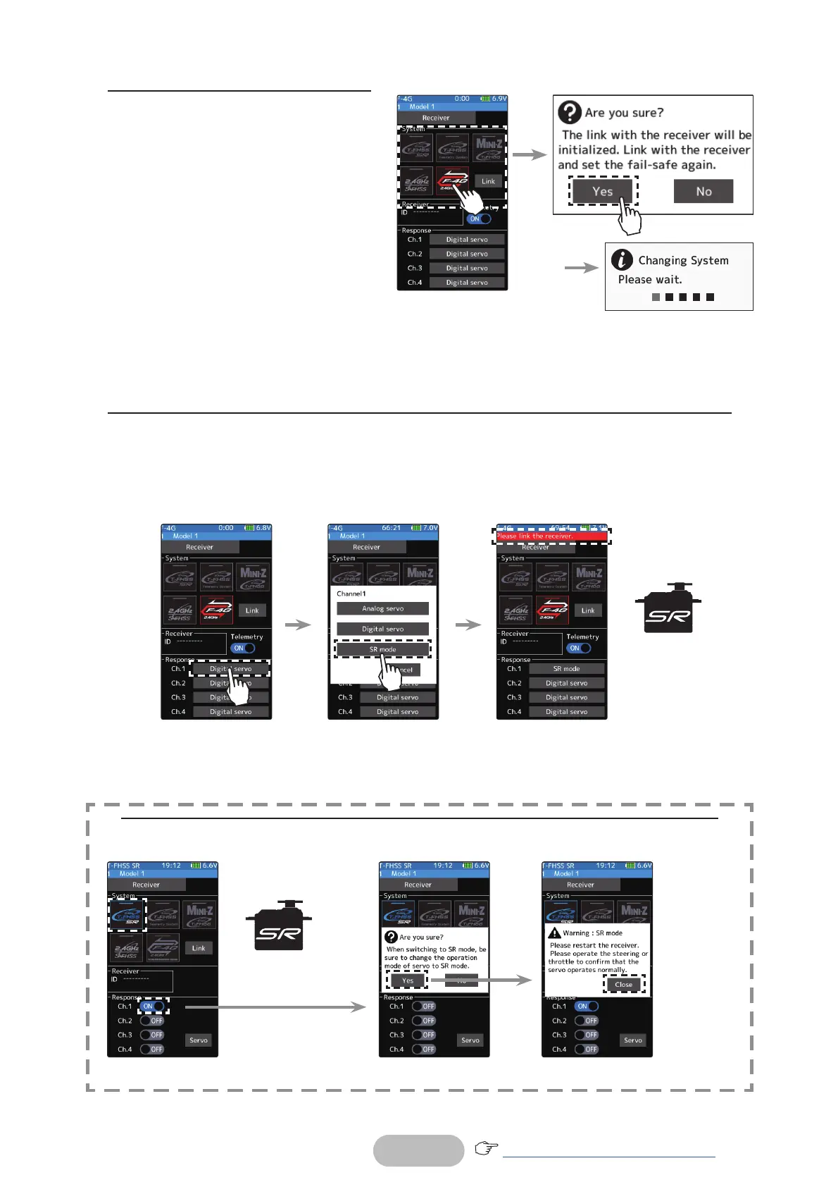 In SR mode ON, normal servo, ESC, and standard gyro will not operate.