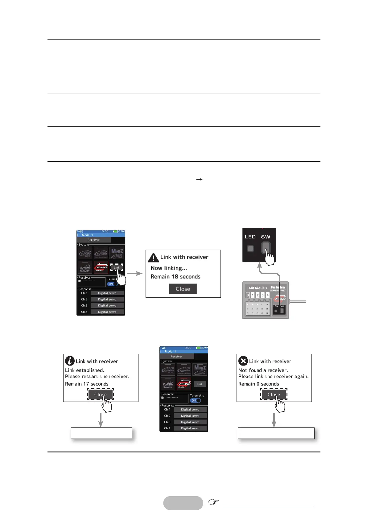 ceiver not found" error screen is displayed, linking failed. Check the set contents and re-