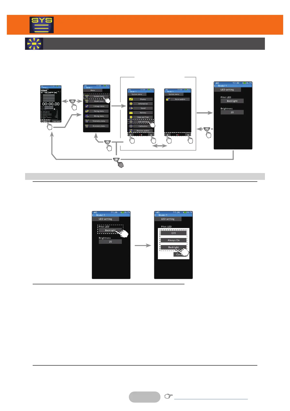 Tap the [Pilot LED], a list of lighting mode will be displayed on the screen. tap the lighting