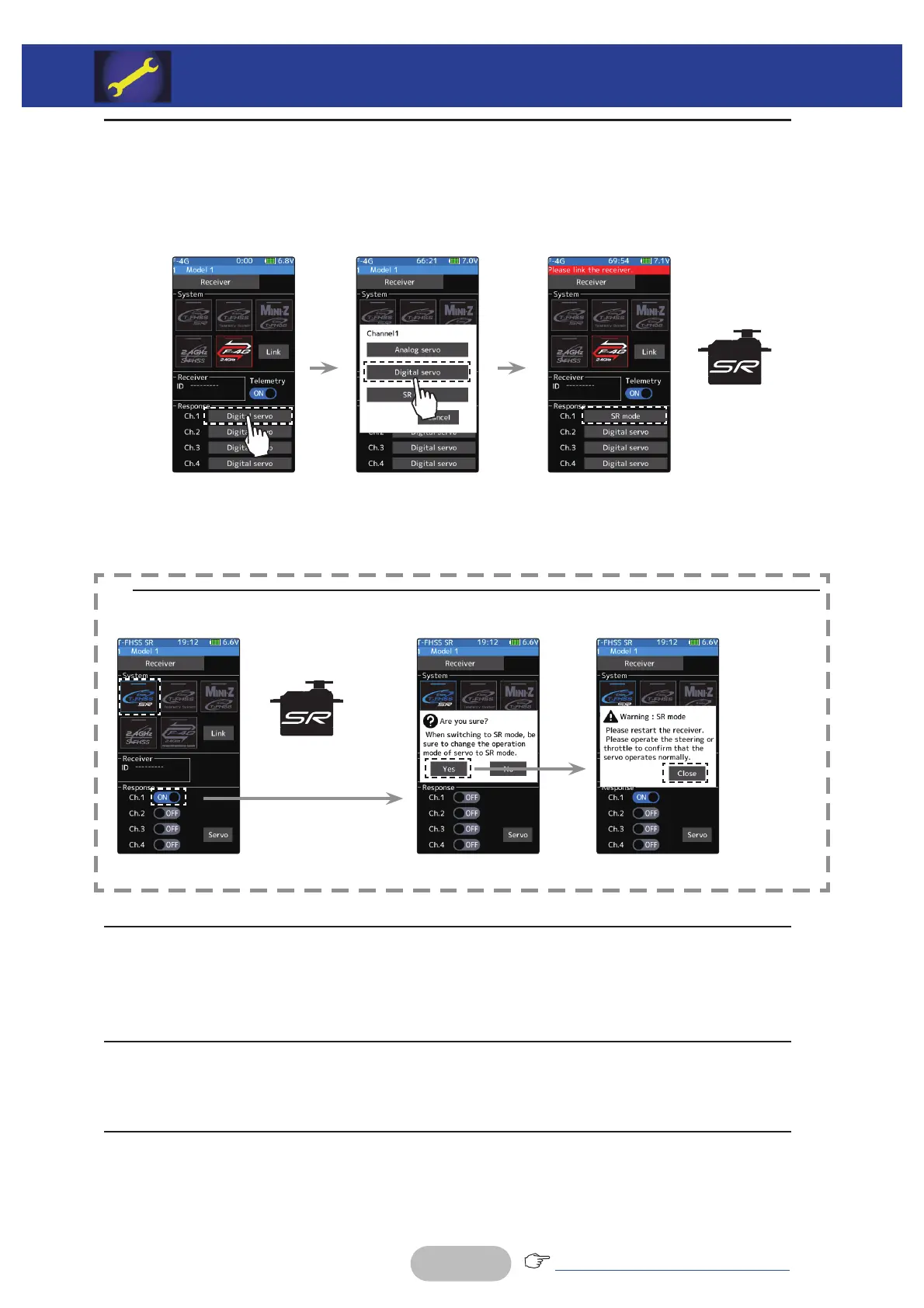 In SR mode ON, normal servo, ESC, and standard gyro will not operate.