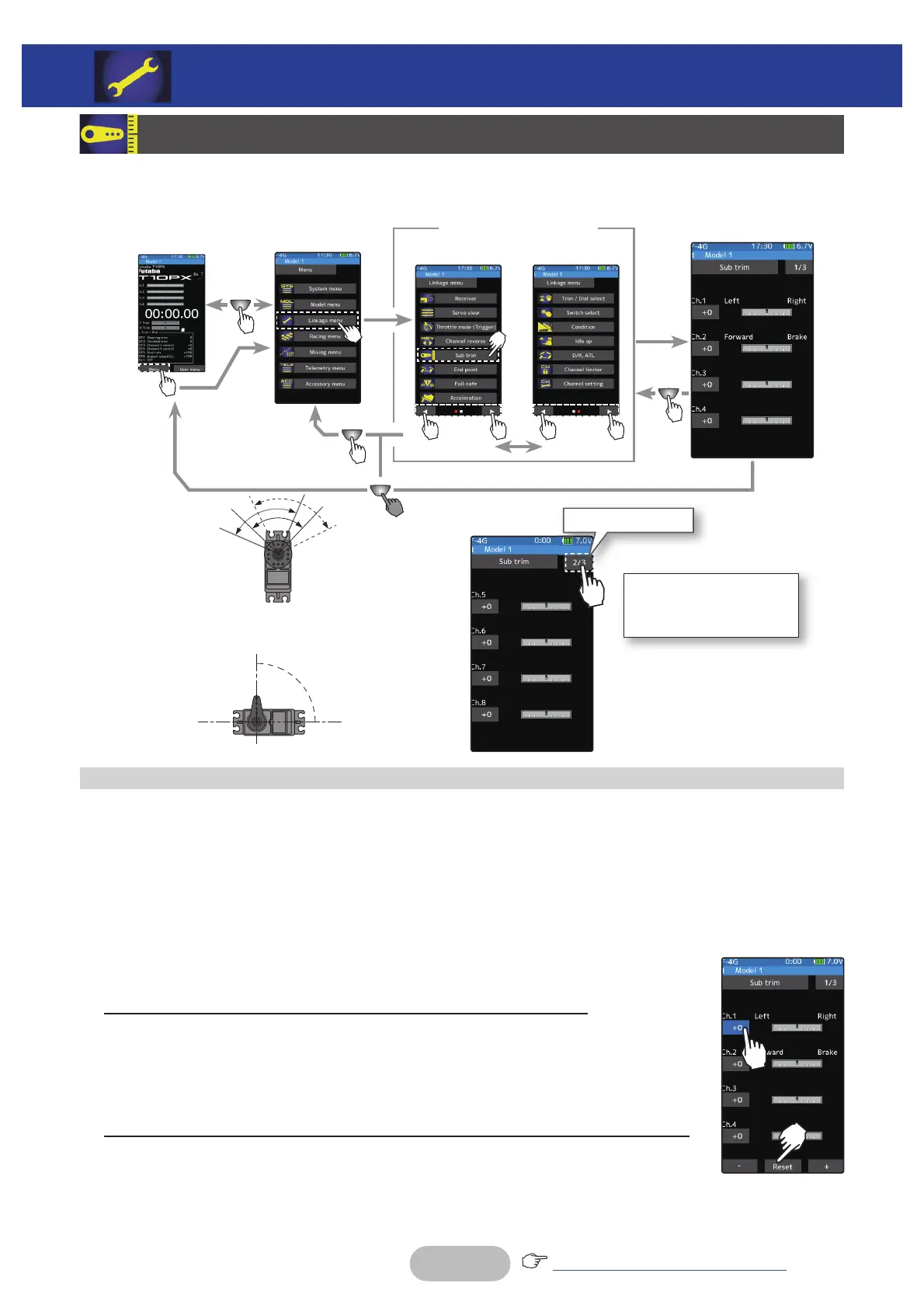 Value input buttons appear on the Sub-trim menu screen.