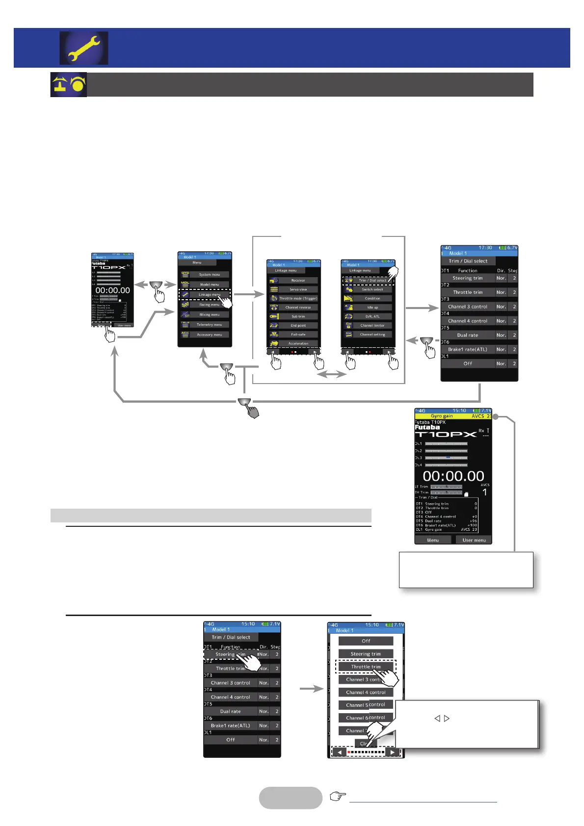 digital trimmers (DT1 to DT6), step amount adjustment, and operating direction reversal.