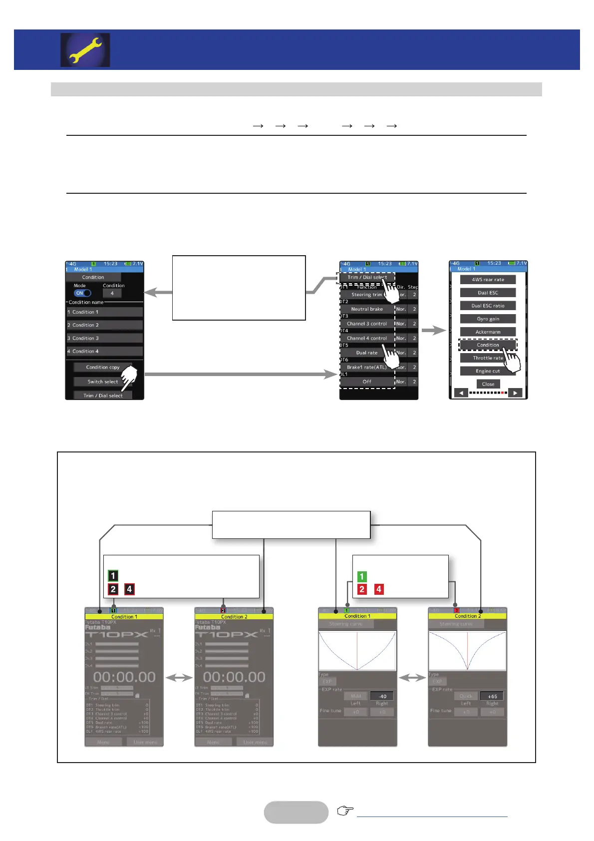 Tap the trim or dial you want to use to display the function selection screen. Since the func-