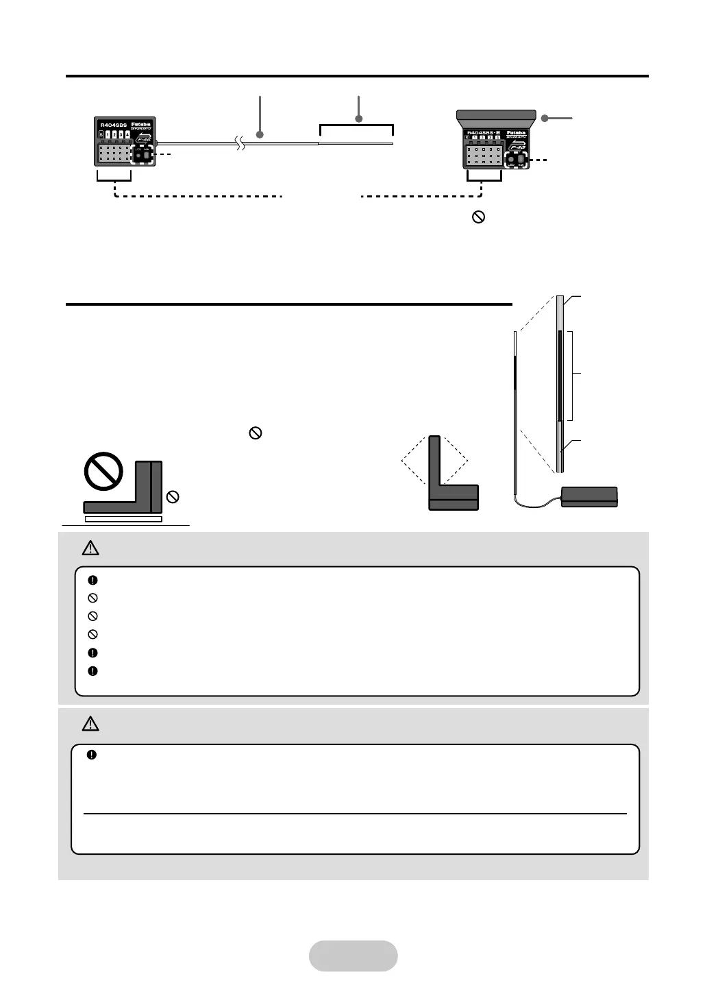 Do not cut or bundle the receiver antenna wire. (R404SBS)