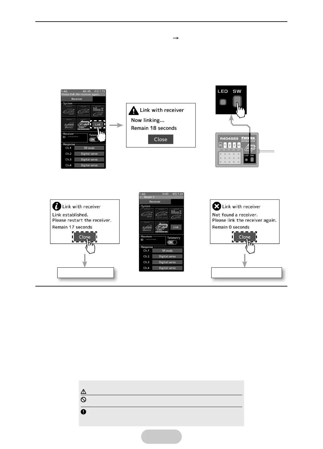 ceiver not found" error screen is displayed, linking failed. Check the set contents and re-